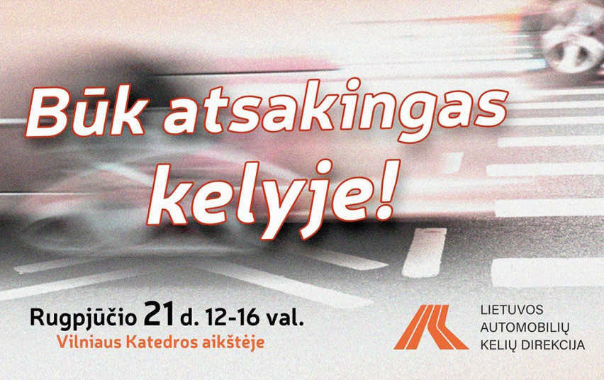 On Saturday 21 August SE Lithuanian Road Administration invites to attend the annual traffic safety event Be Careful on the Road. The event will be held on the Cathedral Square of Vilnius from 12:00 until 16:00 and all family members are invited to take part in it.