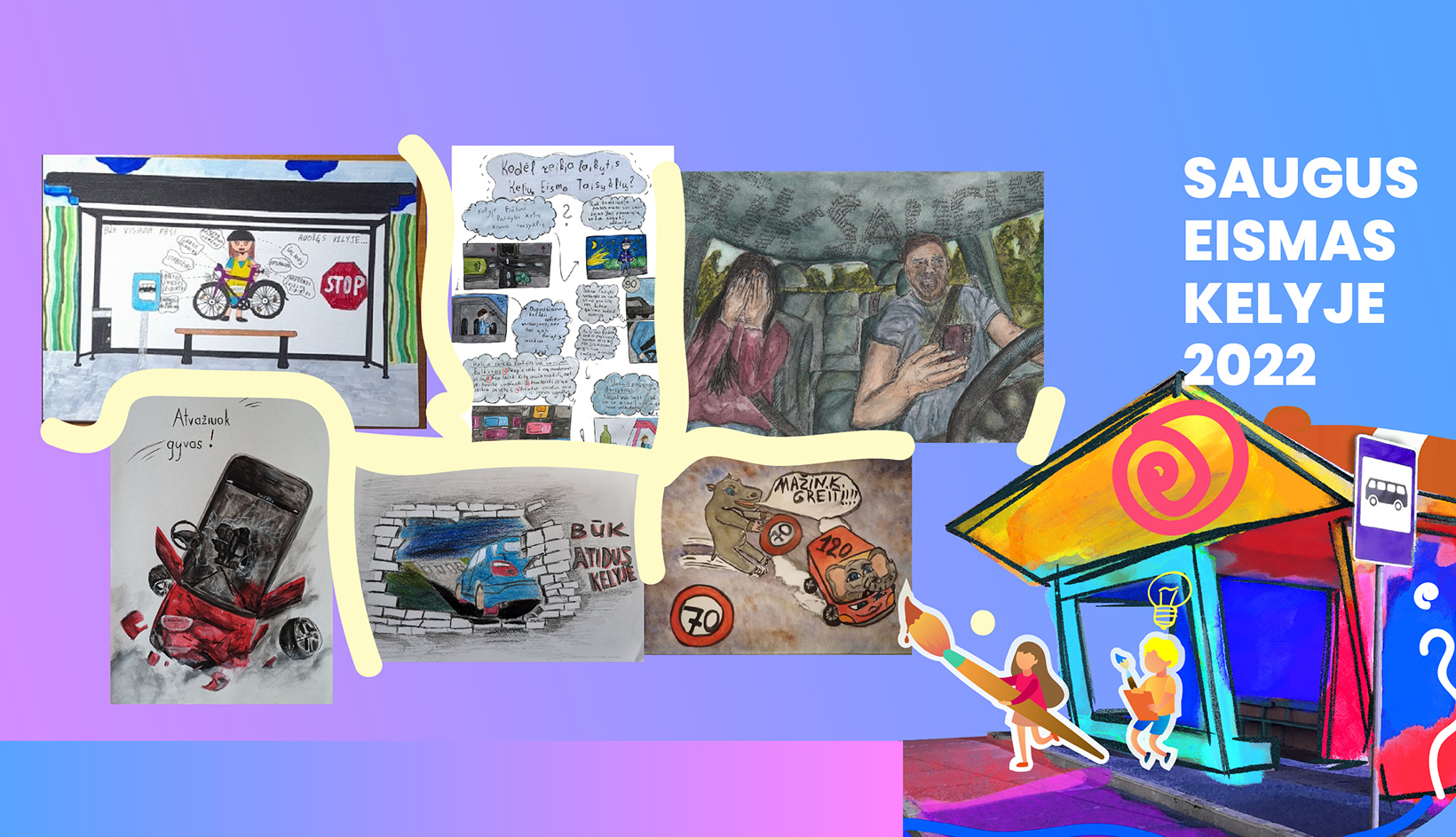The winners of the drawing competition “Road Safety 2022” initiated by the Lithuanian Road Administration (hereinafter – the Road Administration) have been announced: Fifth grade pupil Austėja Pužauskaitė of Šakiai School “Varpas”, seventh grade pupil Grantas Grudzinskas of Butrimonys gymnasium of the Alytus Region, first grade pupil Kamilė Savickaitė of “Versmes” gymnasium of Taurage region, fourth grade pupil Ugnė Barakauskaitė of Žemaičiu Naumiestis School – kindergarten of the Šilute Region, eighth grade pupil Marija Šmakotinaitė of Panevežys “Šaltinis” Progymnasium, and a pupil Nika Pyrčak of the Visaginas Education Centre.