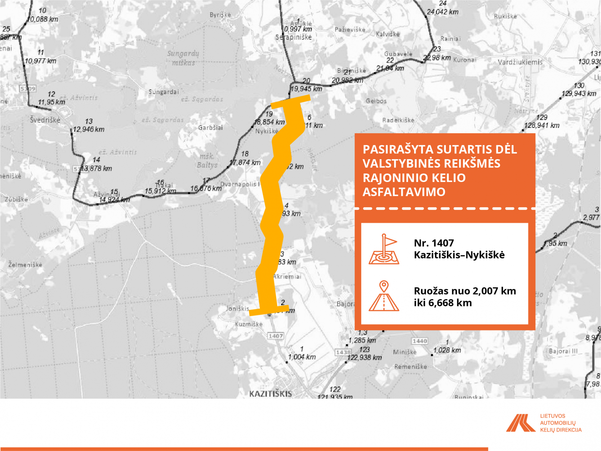 - Kelio Nr. 1407 Kazitiškis–Nykiškė ruožas nuo 2,007 iki 6,668 km;