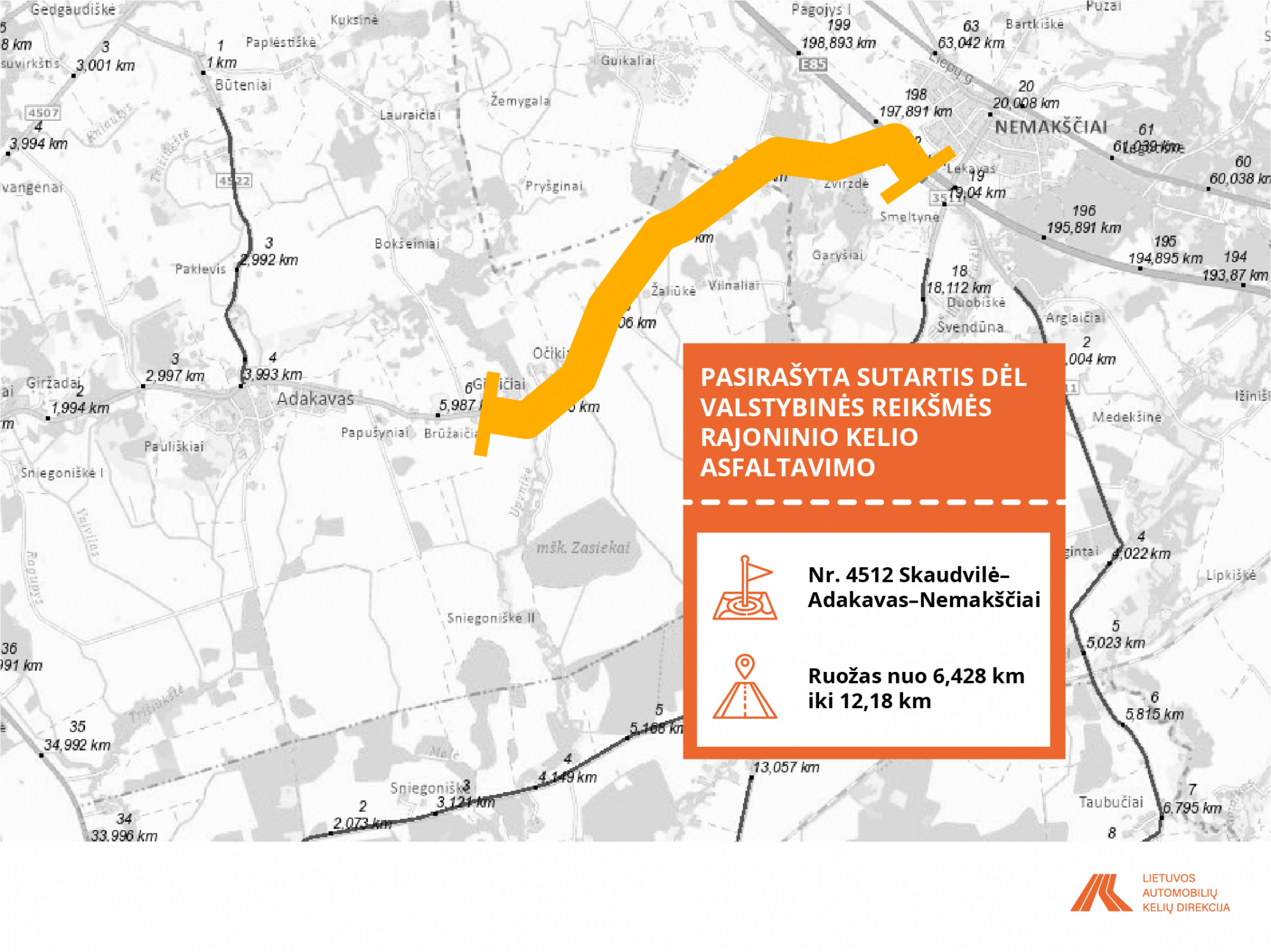 - Kelio Nr. 4512 Skaudvilė–Adakavas–Nemakščiai ruožas nuo 6,428 iki 12,180 km.