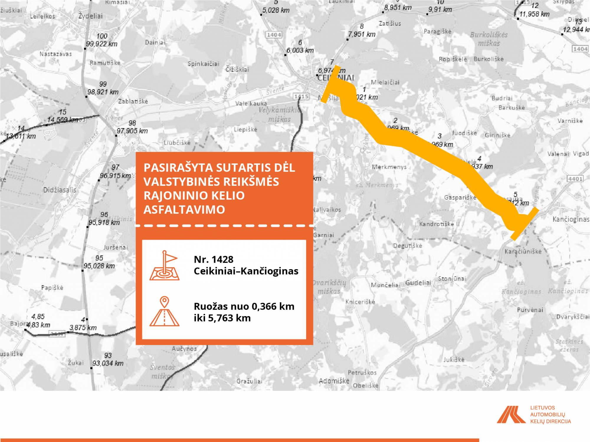 - Kelio Nr. 1428 Ceikiniai–Kančioginas ruožas nuo 0,366 iki 5,763 km;