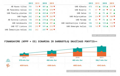 - Asociacijos „Lietuvos keliai” darbuotojų skaičiaus kitimo bei lėšų skirtų šalies keliams administruoti, tiesti ir prižiūrėti duomenys (infografikas)