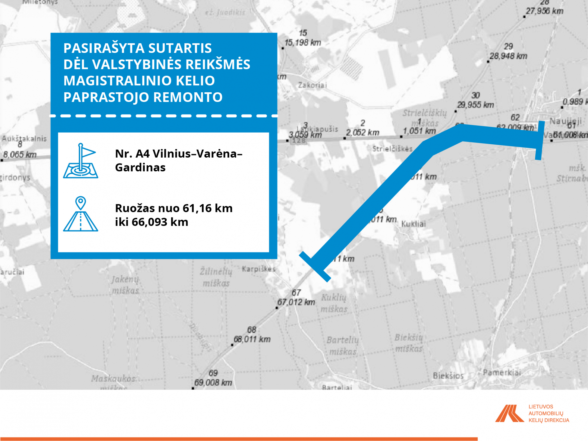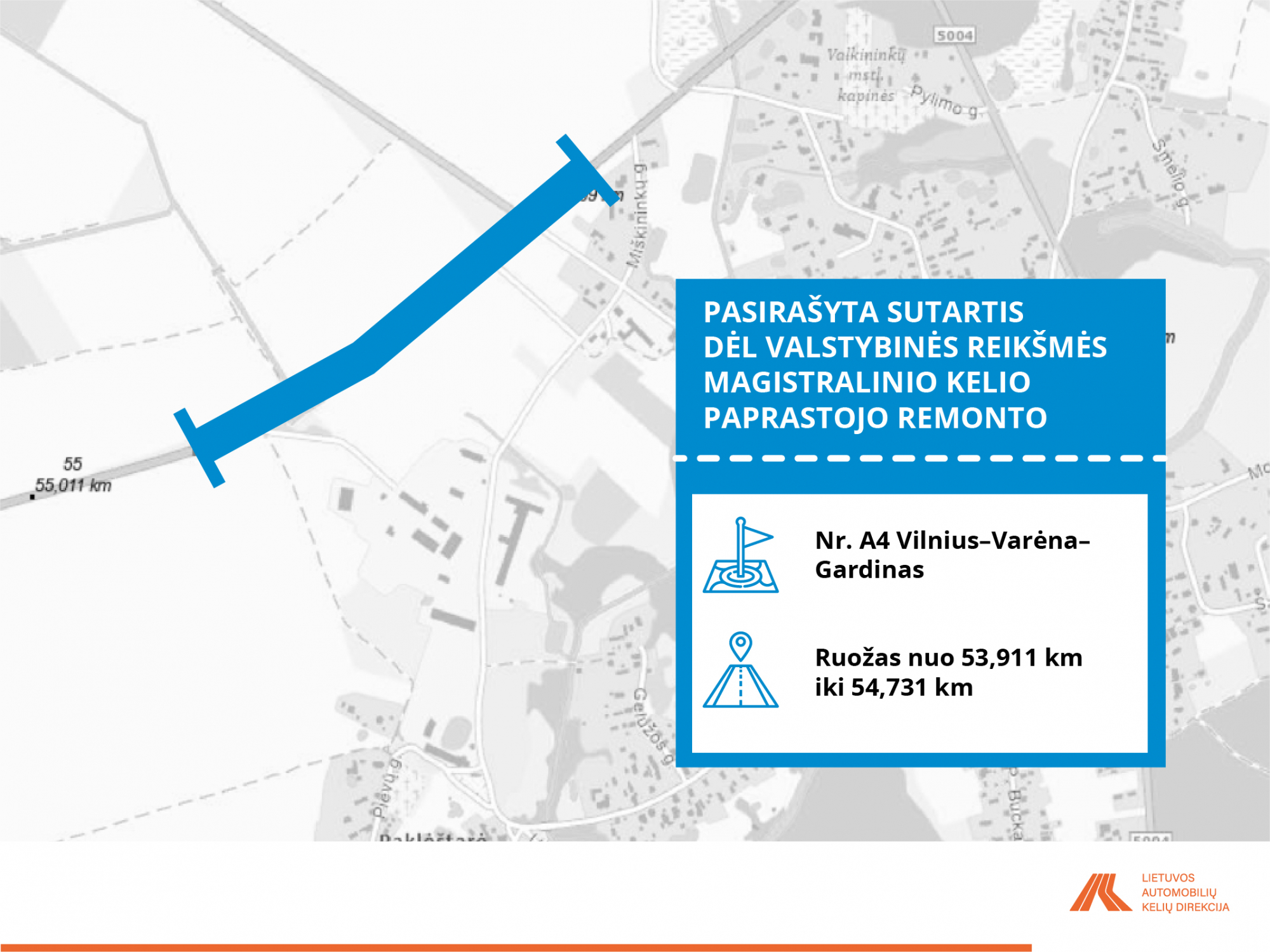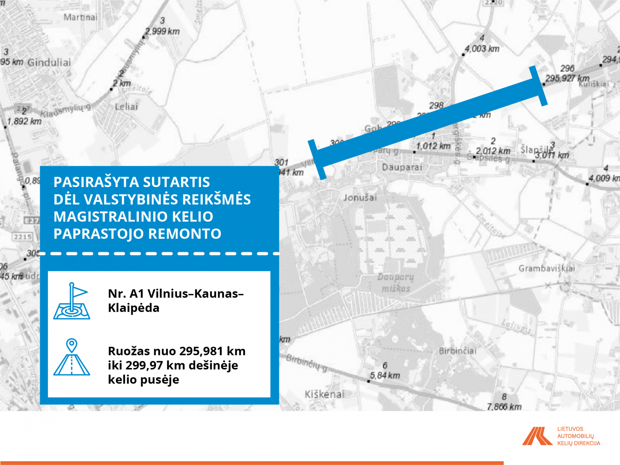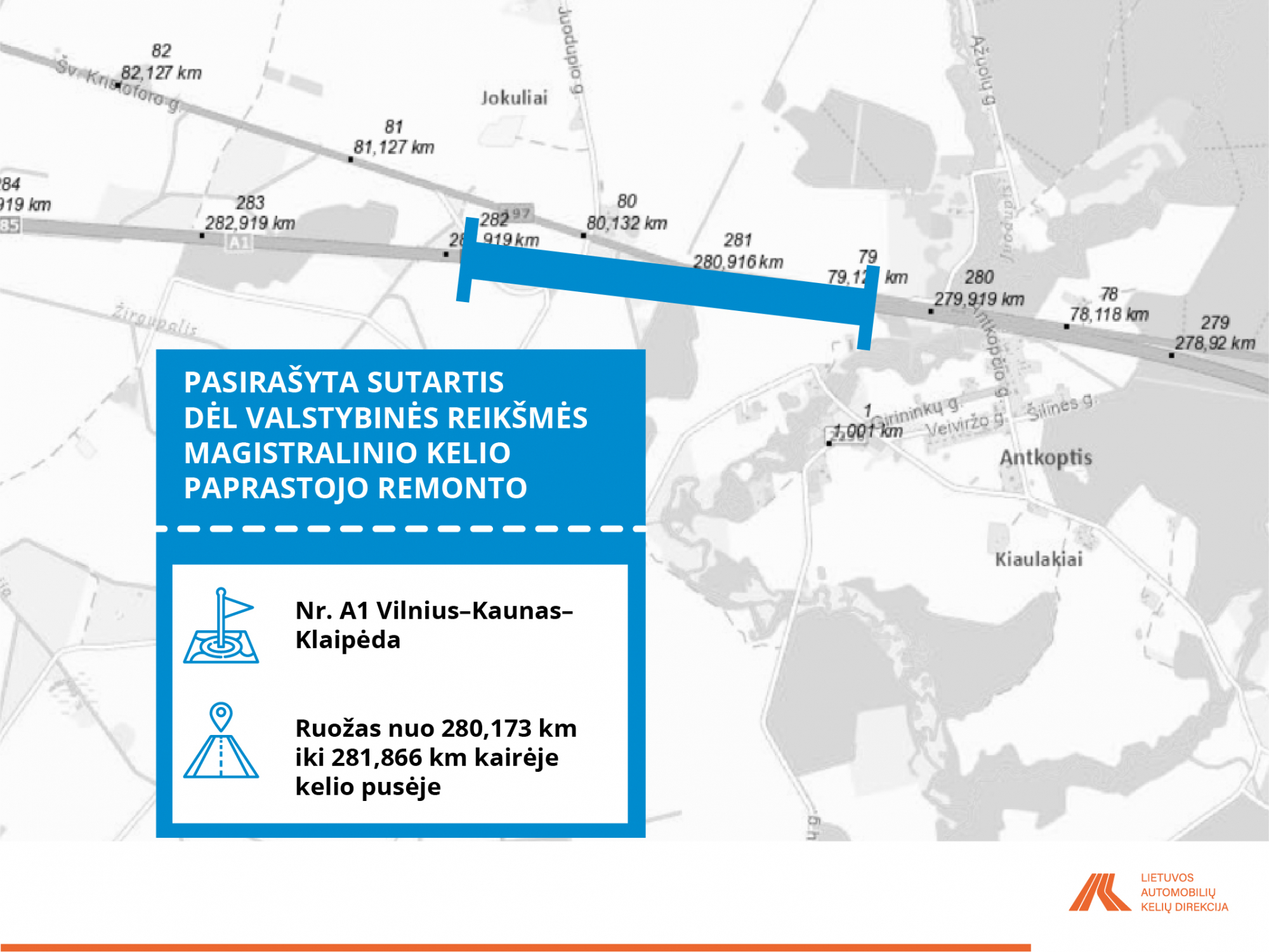 VĮ Lietuvos automobilių kelių direkcija su rangovais pasirašė 11 rangos darbų sutarčių, pagal kurias bus atliekami paprastojo remonto ir rekonstrukcijos darbai.