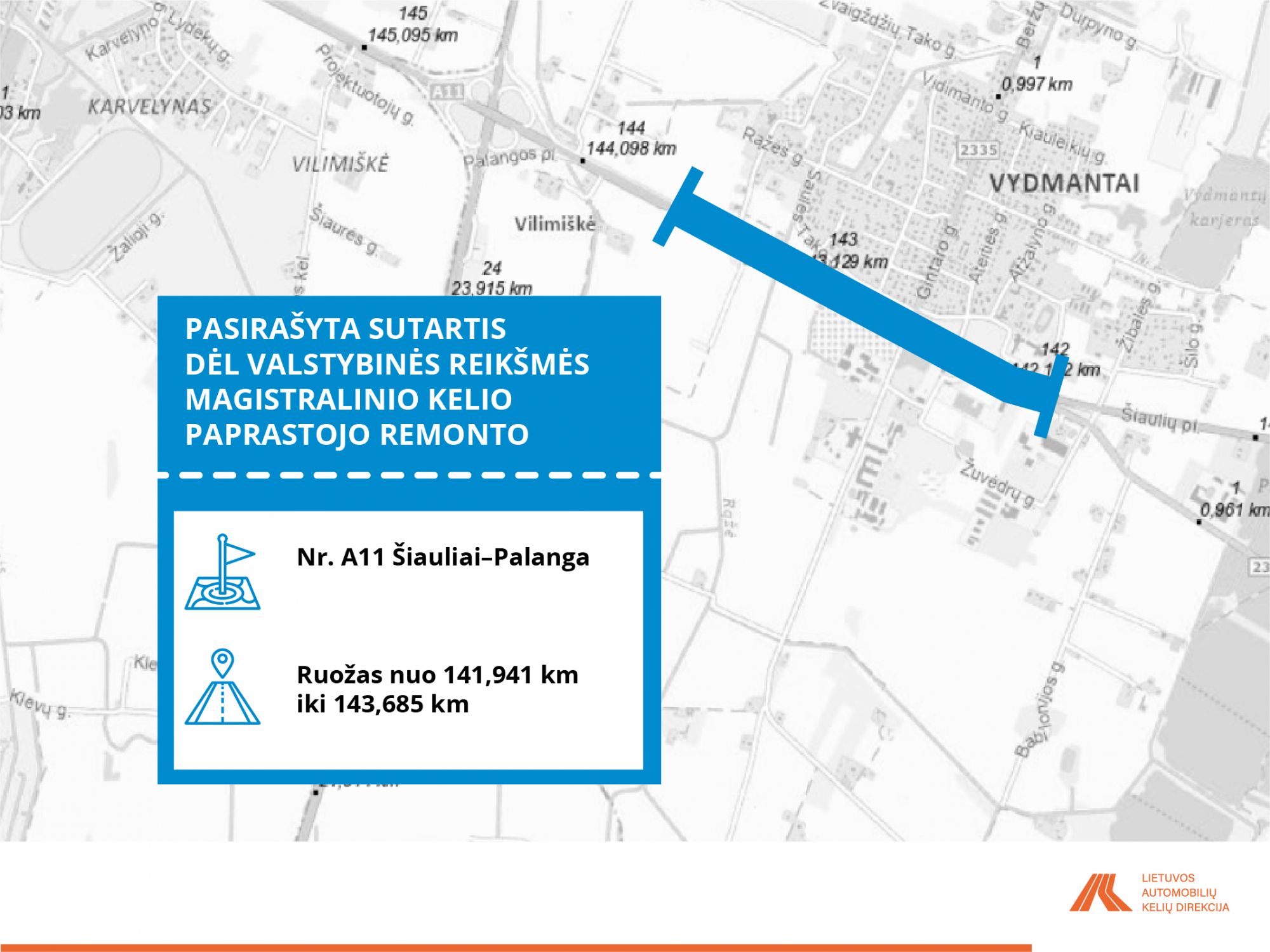 • Nr. A11 Šiauliai–Palanga ruožo nuo 141,941 iki 143,685 km;
