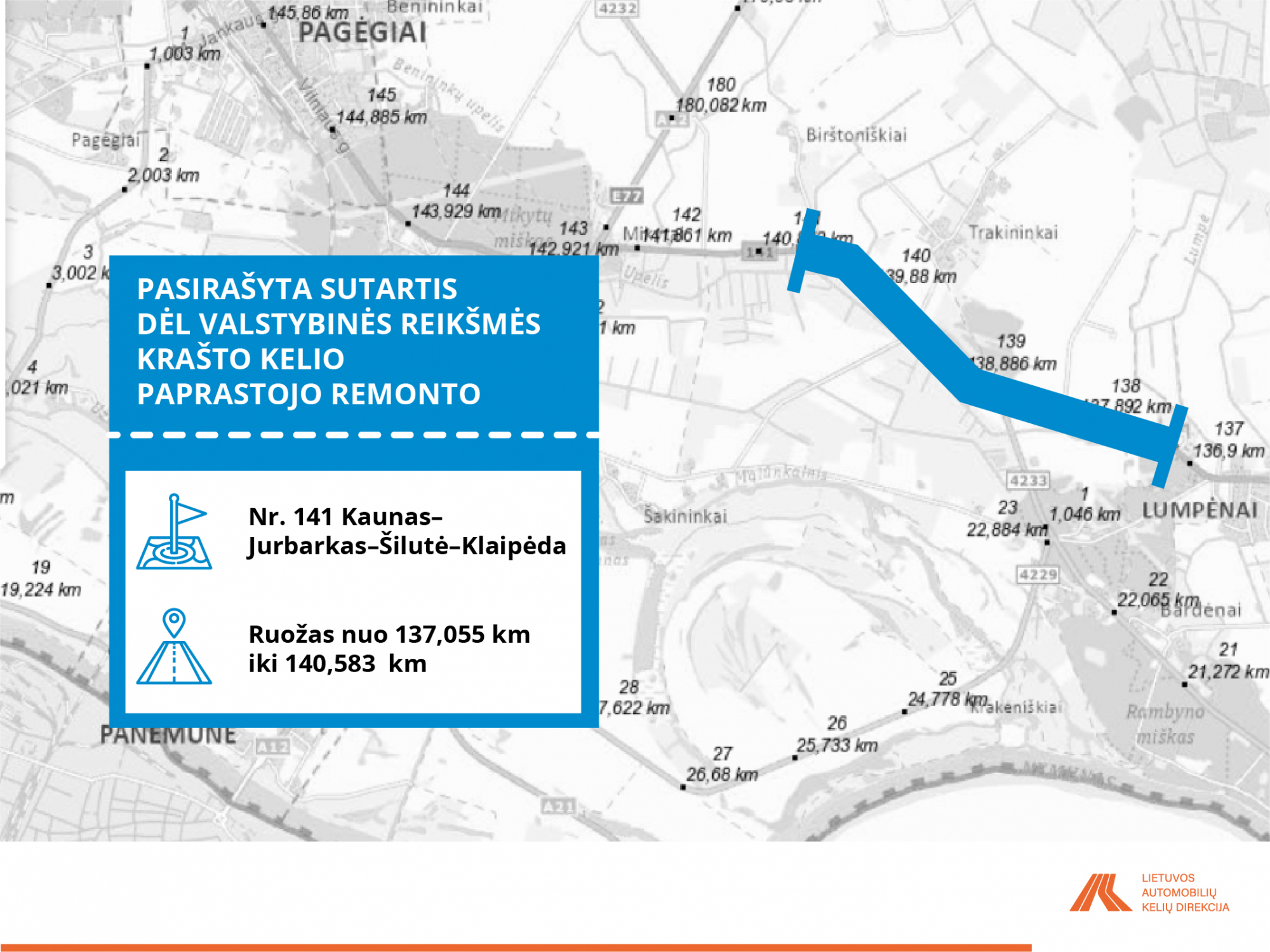 • Nr. 141 Kaunas–Jurbarkas–Šilutė–Klaipėda ruožo nuo 137,055 iki 140,583 km;