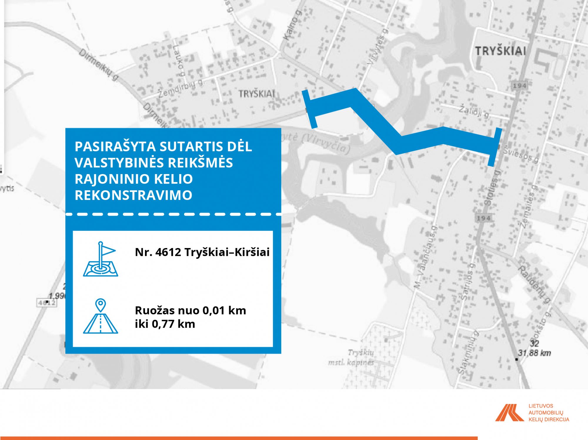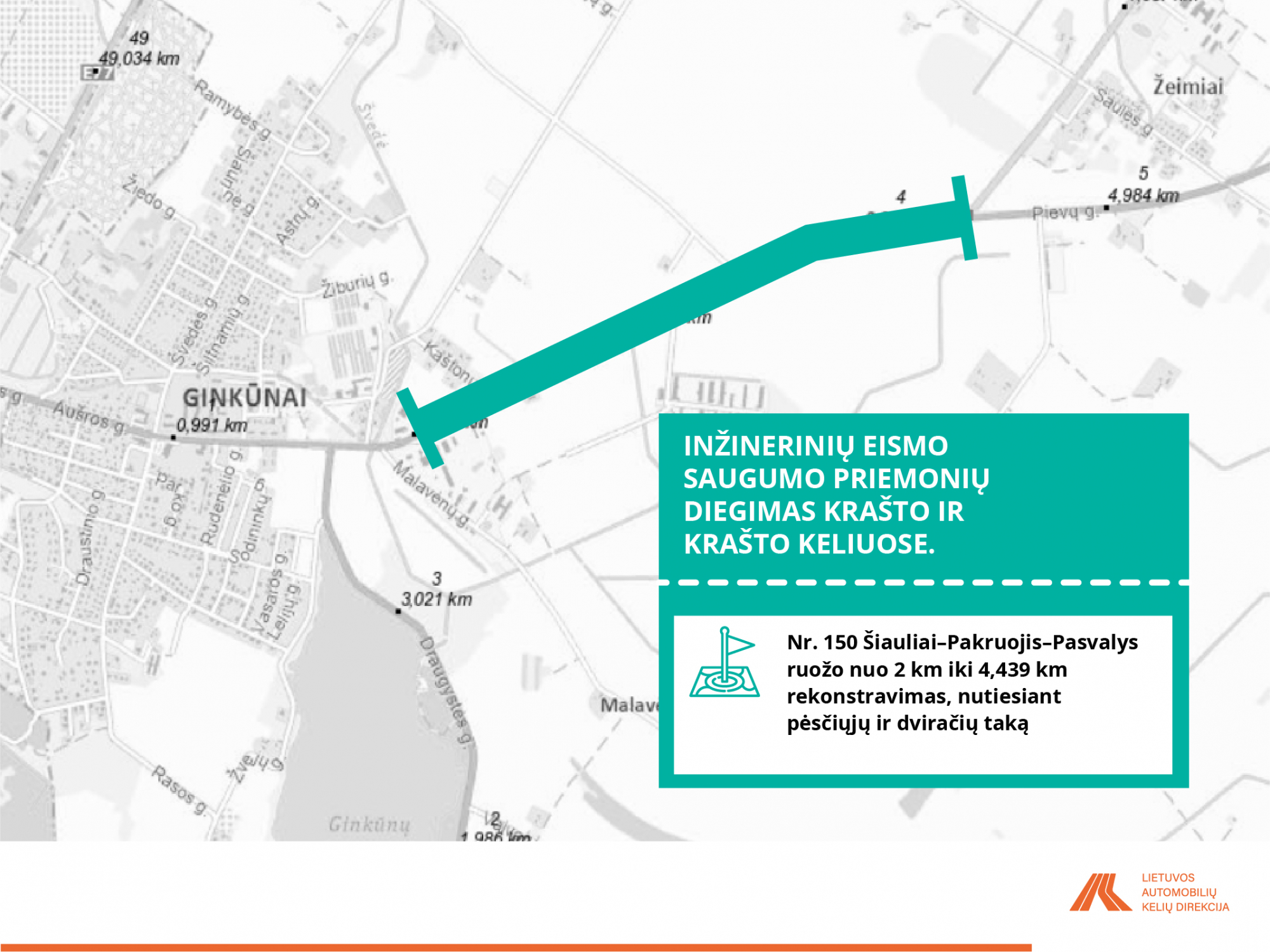 • Nr. 150 Šiauliai–Pakruojis–Pasvalys ruožo nuo 2,00 iki 4,439 km rekonstravimas, nutiesiant pėsčiųjų ir dviračių taką.