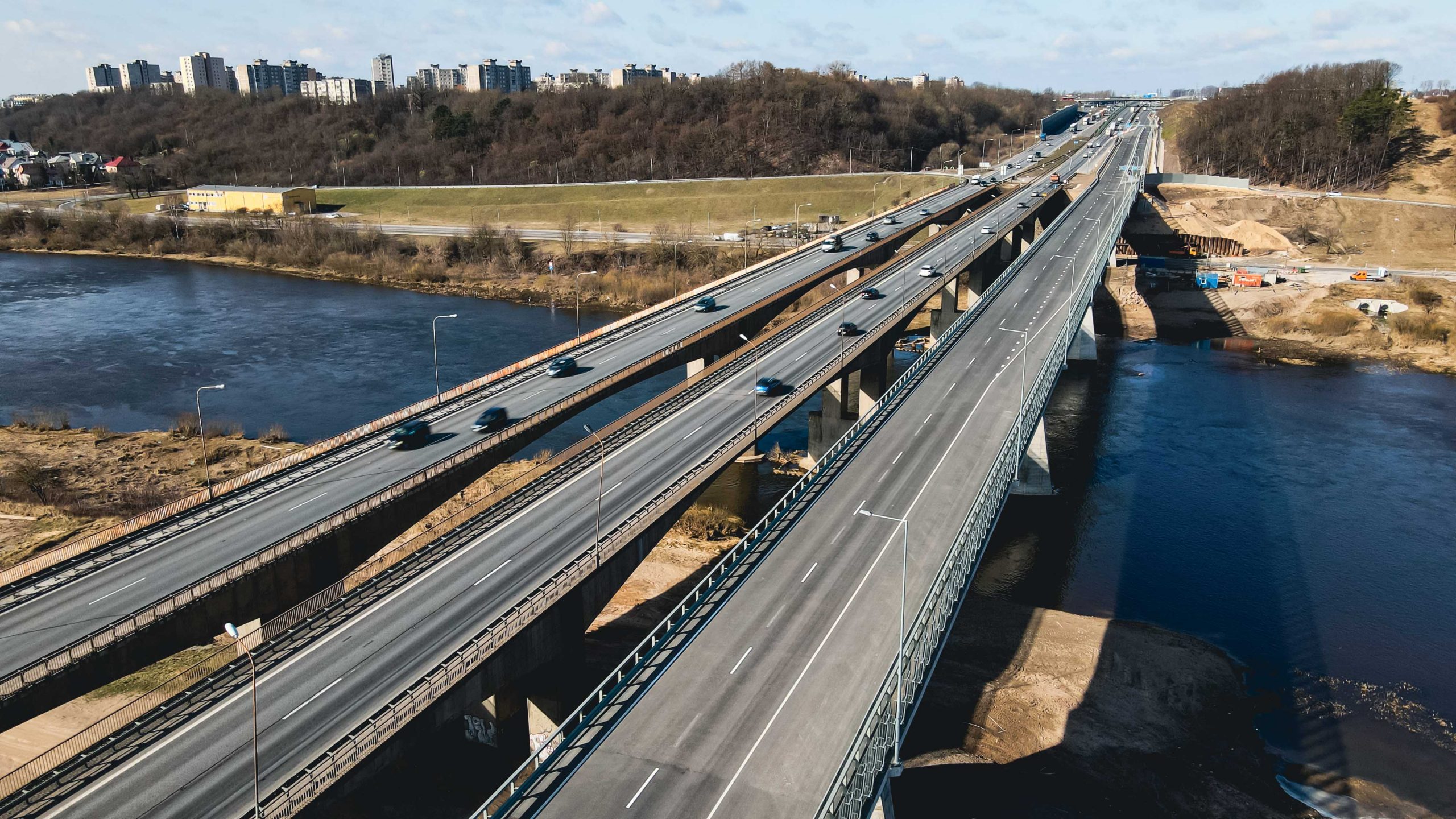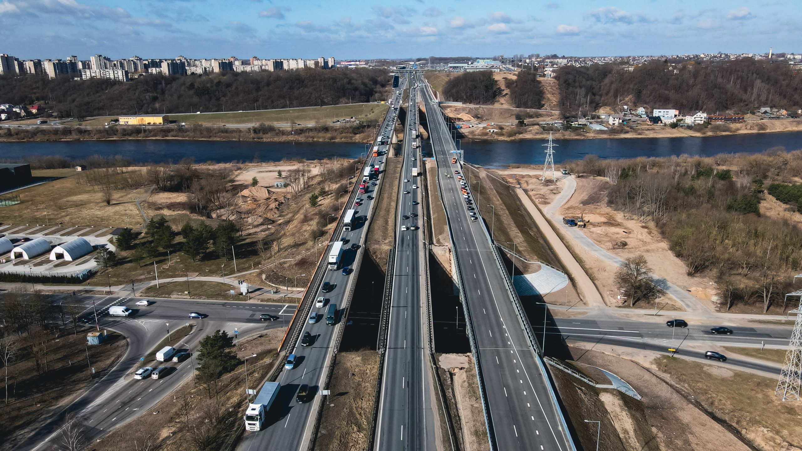 Šiandien paleistas eismas per naujai pastatytą tiltą per Nerį Kaune (magistralinio kelio A1 Vilnius–Kaunas–Klaipėda ruožo nuo 99,29 iki 100,47 km).