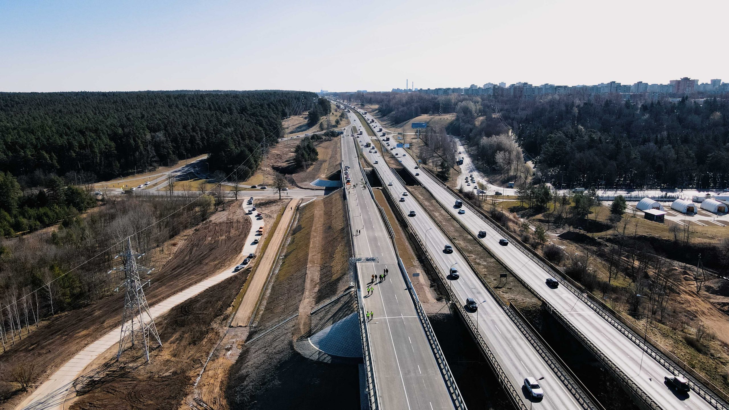 Pasak VĮ Lietuvos automobilių kelių direkcijos vadovo Remigijaus Lipkevičiaus, įgyvendinant šį projektą jau pastatytas naujas tiltas per Nerį, viadukas per Jonavos gatvę, įrengtos triukšmo mažinimo priemonės, apšvietimas, sutvarkytos tilto prieigos, sujungiant naujo projekto infrastruktūrą su prieš kelis metus pabaigto projekto (magistralinio kelio A1 Vilnius–Kaunas–Klaipėda ruožo nuo 100,47 iki 101,79 km) įrengta nauja infrastruktūra.