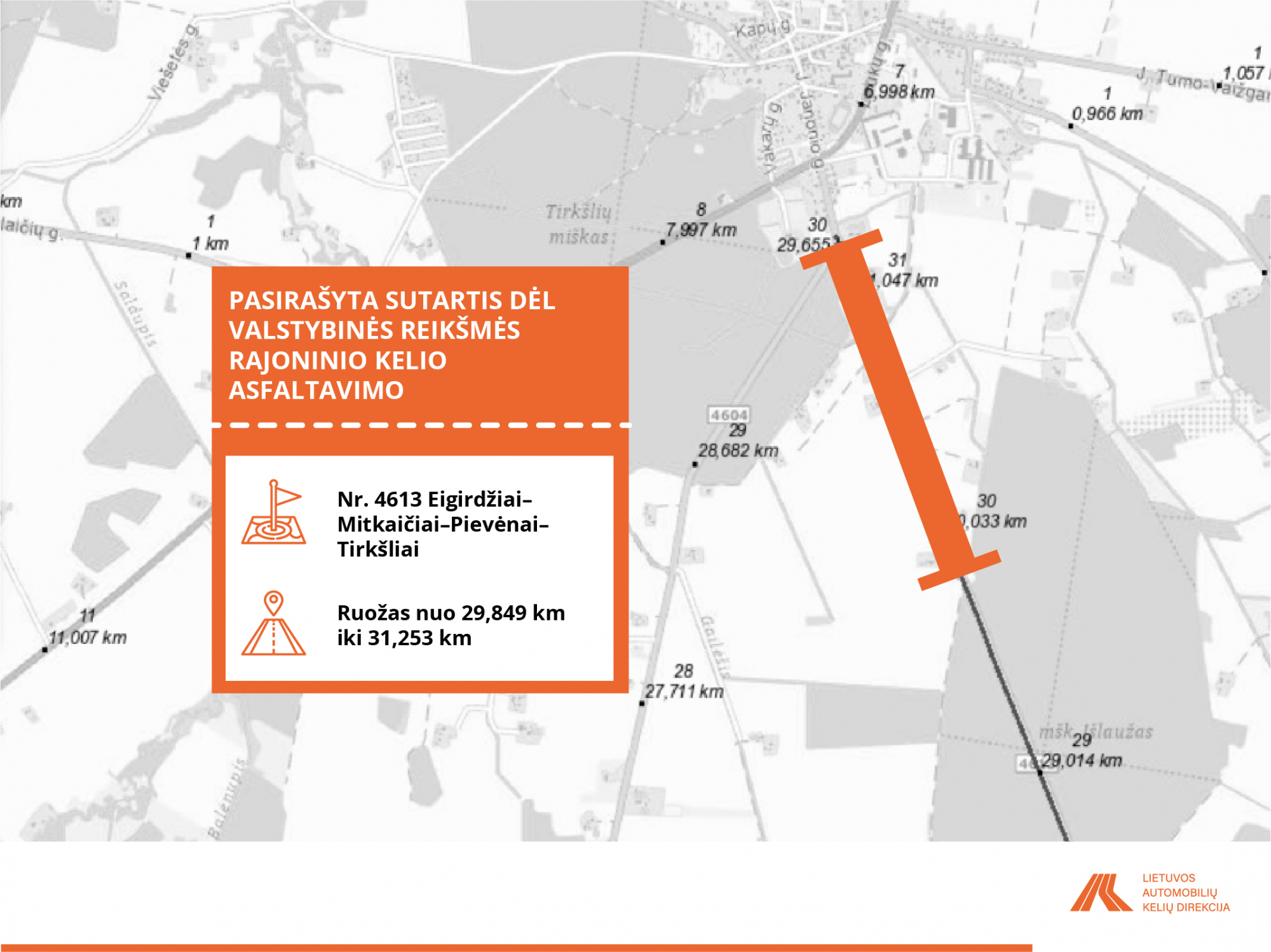 • Nr. 4613 Eigirdžiai–Mitkaičiai–Pievėnai–Tirkšliai nuo 29,849 iki 31,253 km;