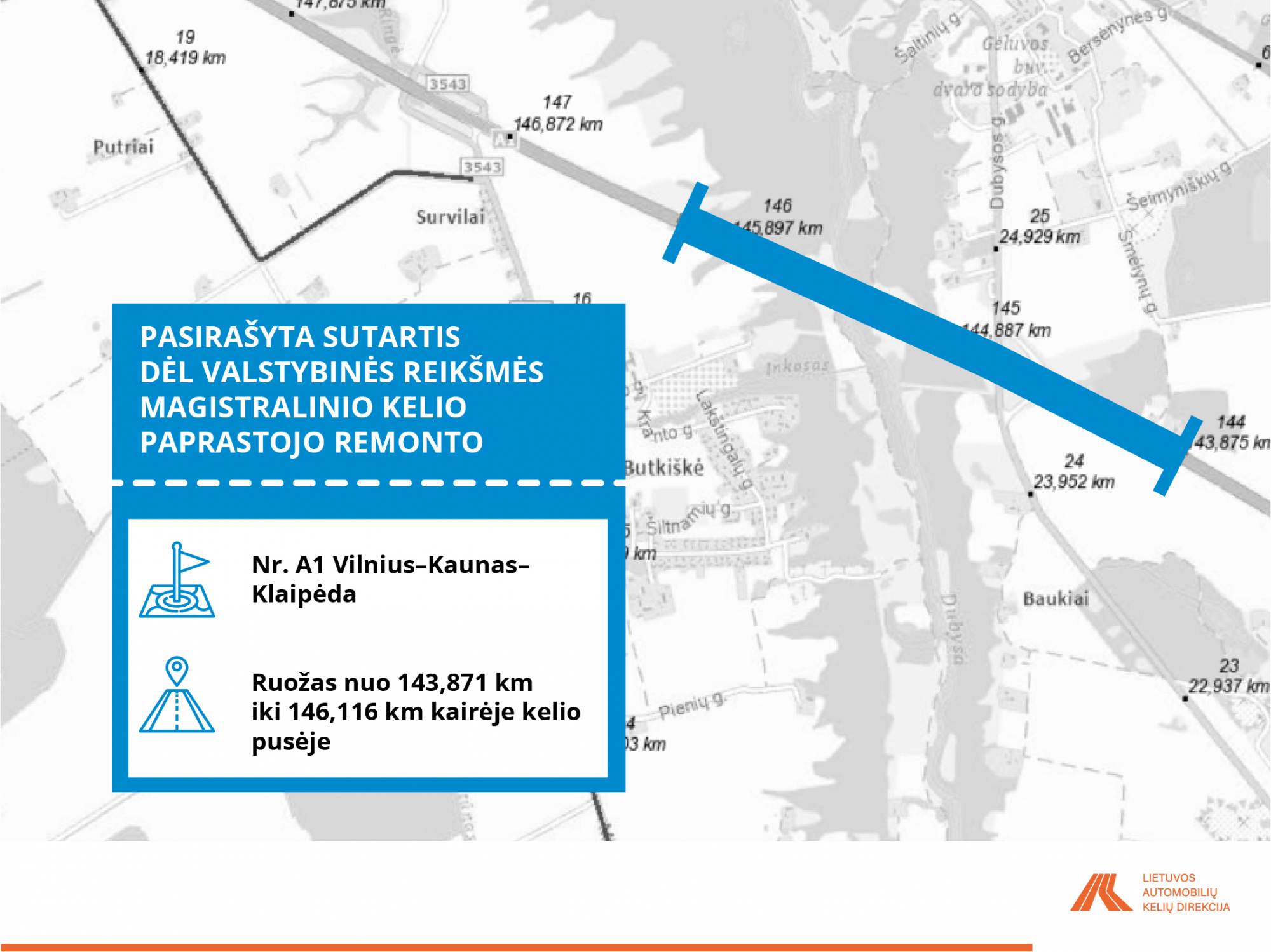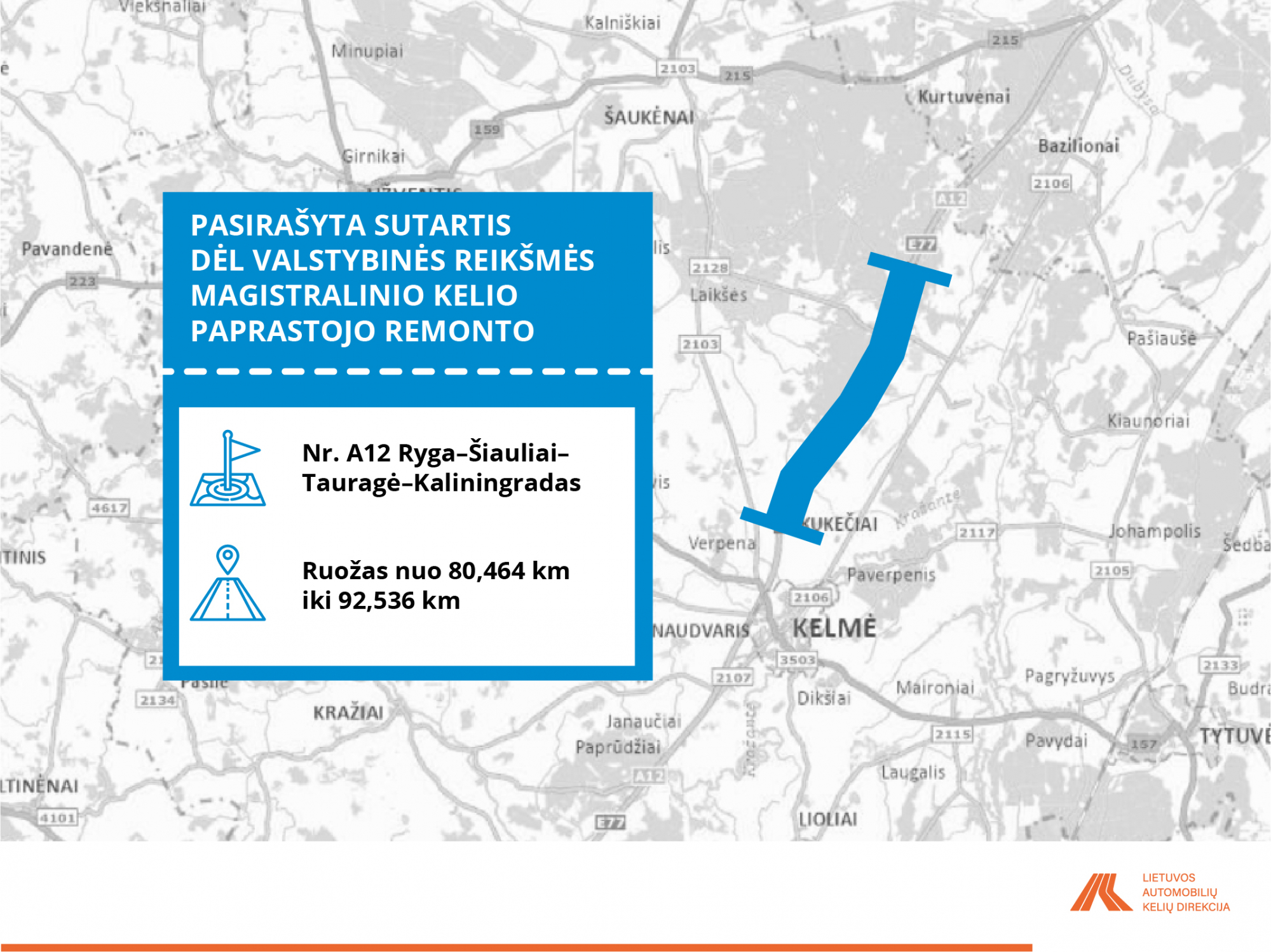 VĮ Lietuvos automobilių kelių direkcija su rangovais pasirašė iš viso dvylika sutarčių, pagal kurias, per laikotarpį nuo 6 iki 12 mėn., bus atlikti minėti darbai.