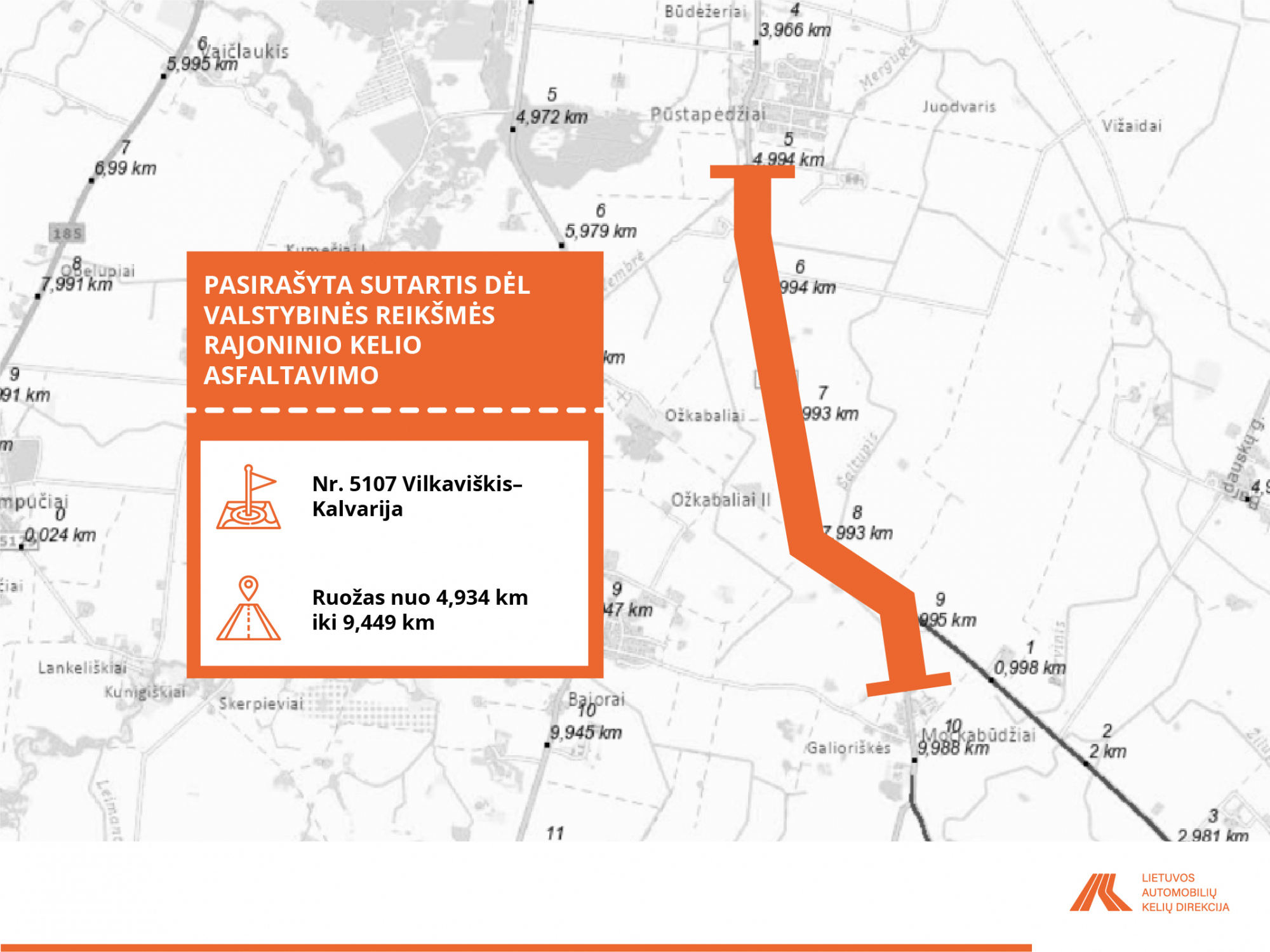 • Nr. 5107 Vilkaviškis–Kalvarija nuo 4,934 iki 9,449 km;
