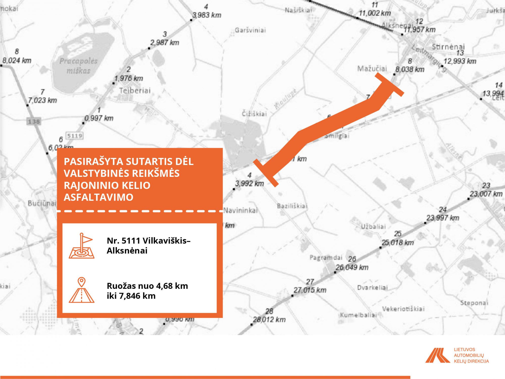 • Nr. 5111 Vilkaviškis–Alksnėnai nuo 4,680 iki 7,846 km;