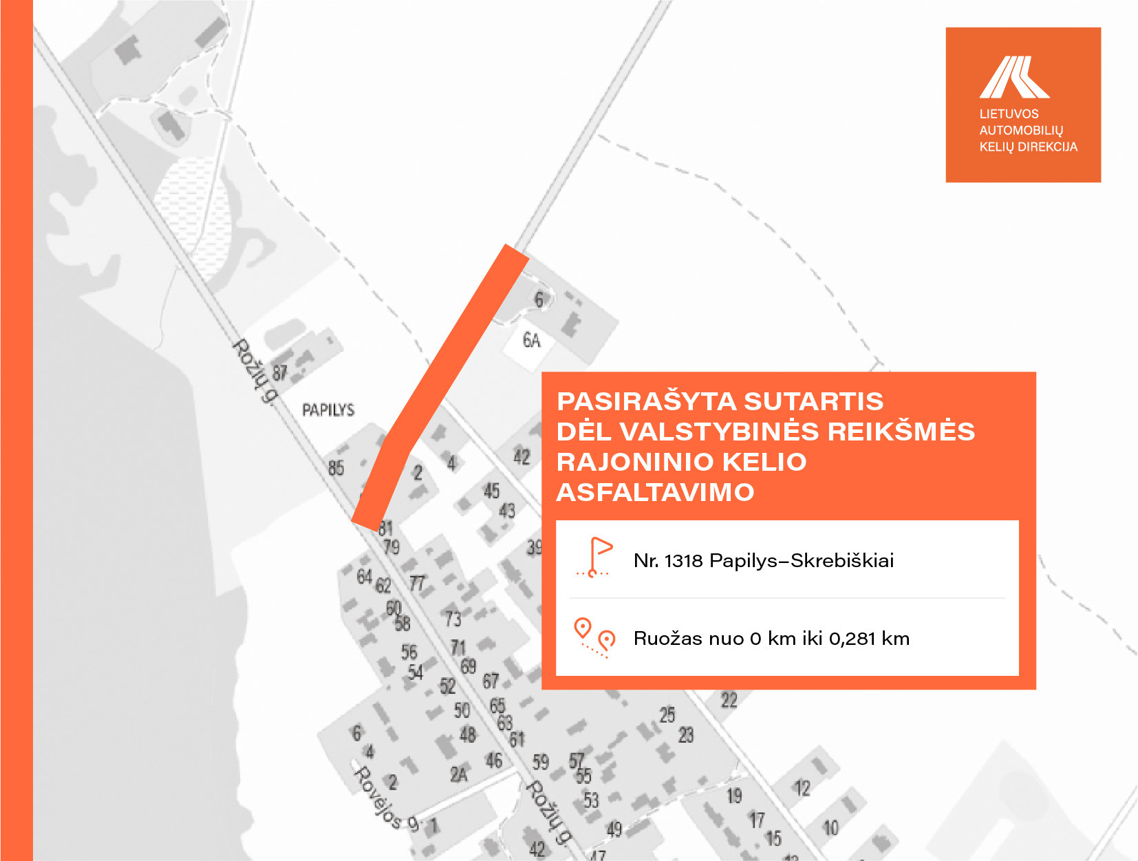• Nr. 1318 Papilys–Skrebiškiai ruože nuo 0,000 iki 0,281 km;