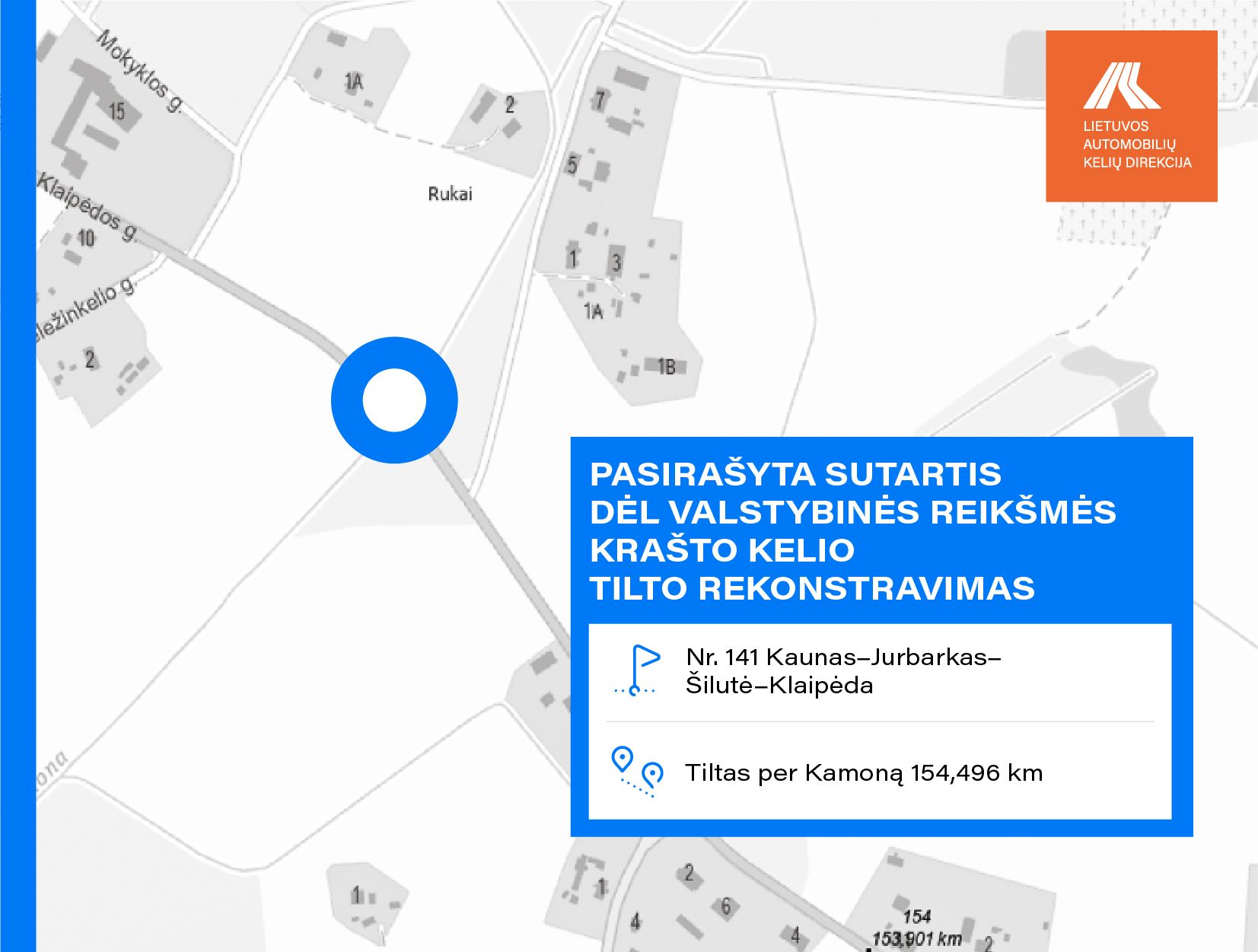 • Tilto per Kamoną krašto kelio Nr. 141 Kaunas–Jurbarkas–Šilutė–Klaipėda 154,496 km.