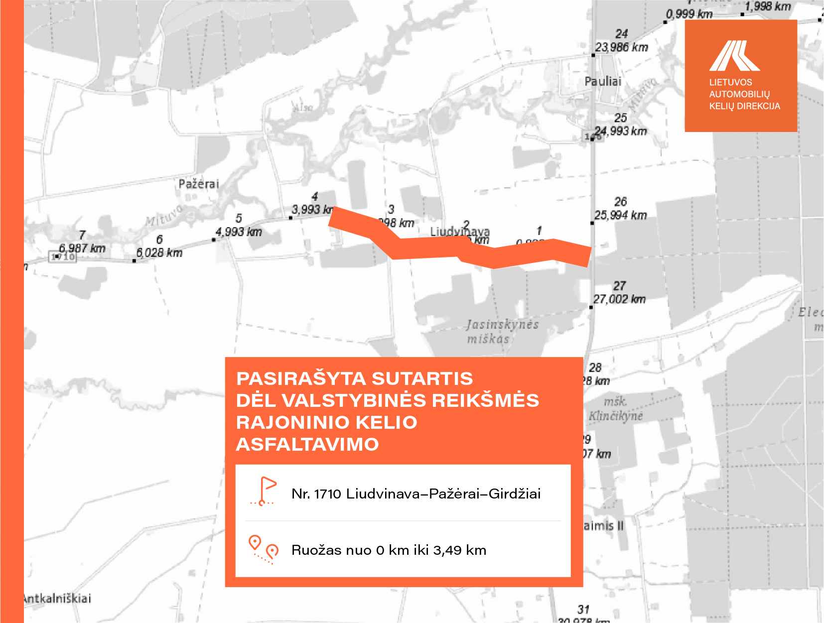 • Nr. 1710 Liudvinava–Pažėrai–Girdžiai ruože nuo 0,000 iki 3,490 km.