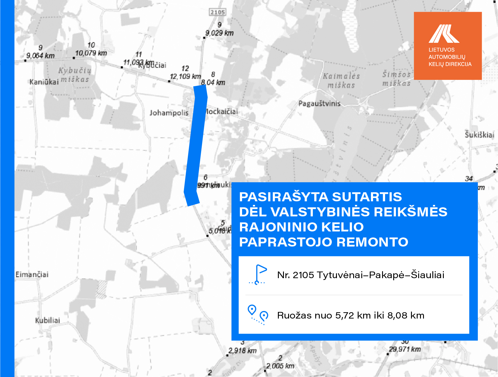• Nr. 2105 Tytuvėnai–Pakapė–Šiauliai ruožo nuo 5,720 iki 8,080 km;