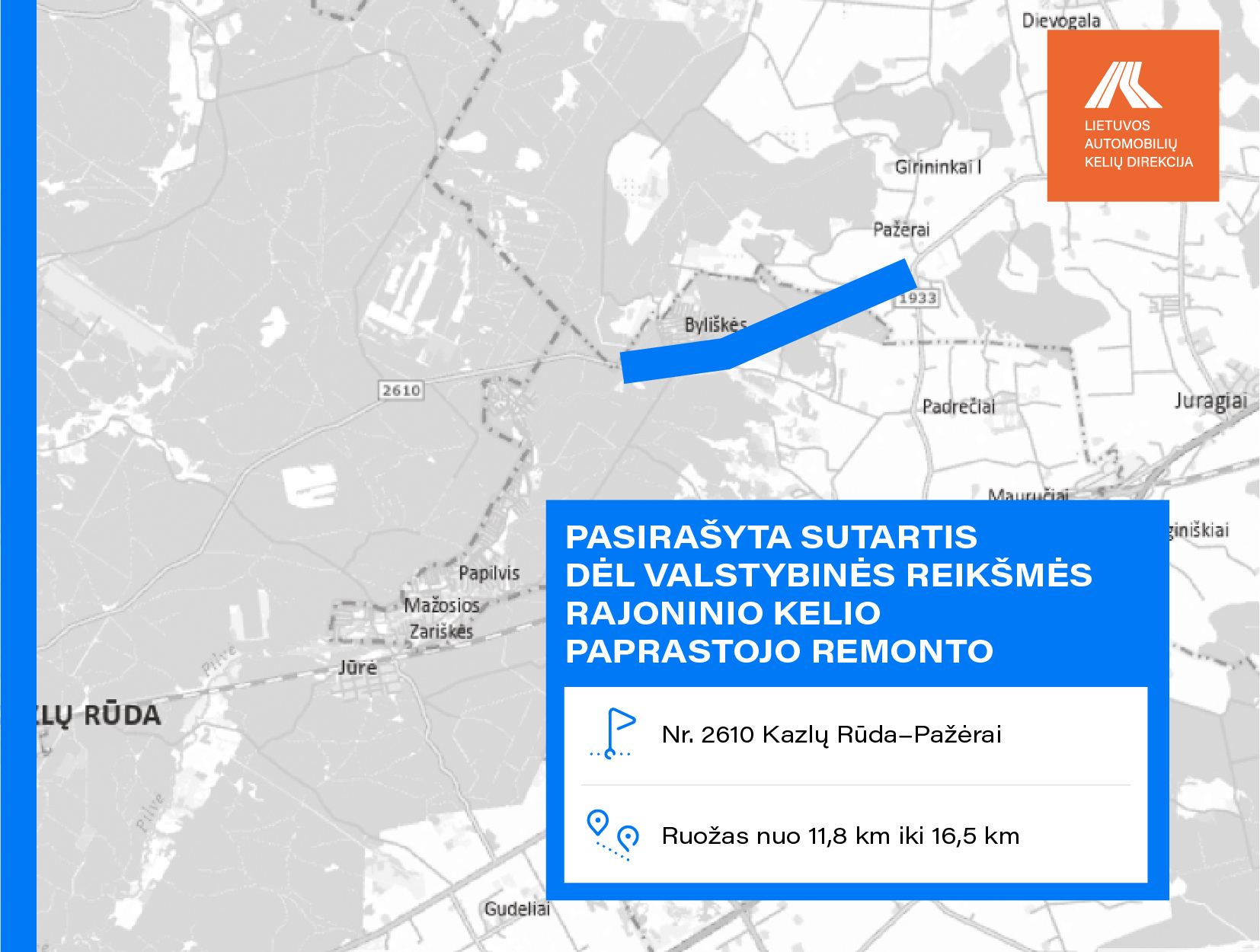 • Nr. 2610 Kazlų Rūda–Pažėrai ruože nuo 11,800 iki 16,500 km;