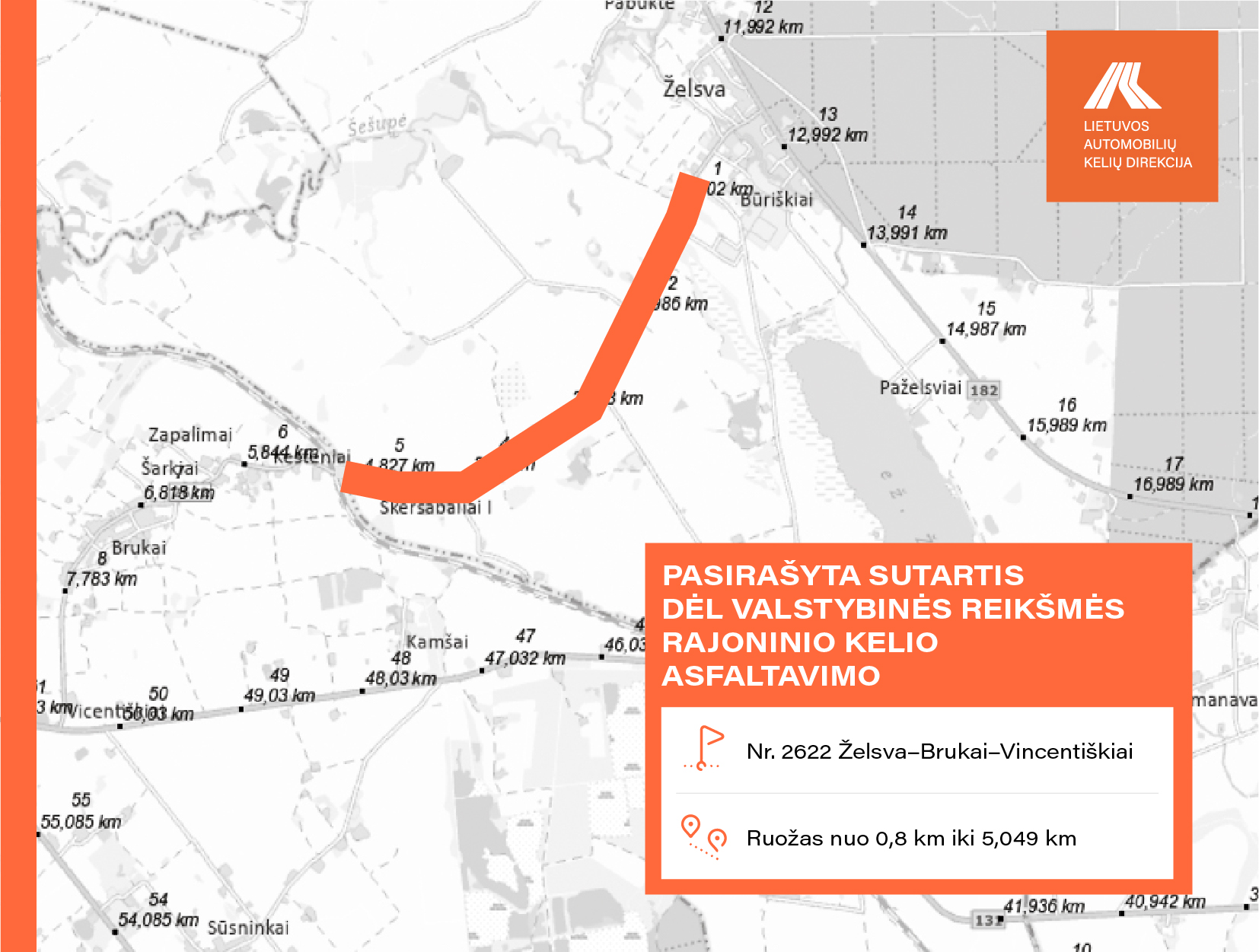 • Nr. 2622 Želsva–Brukai–Vincentiškiai ruože nuo 0,80 iki 5,049 km;