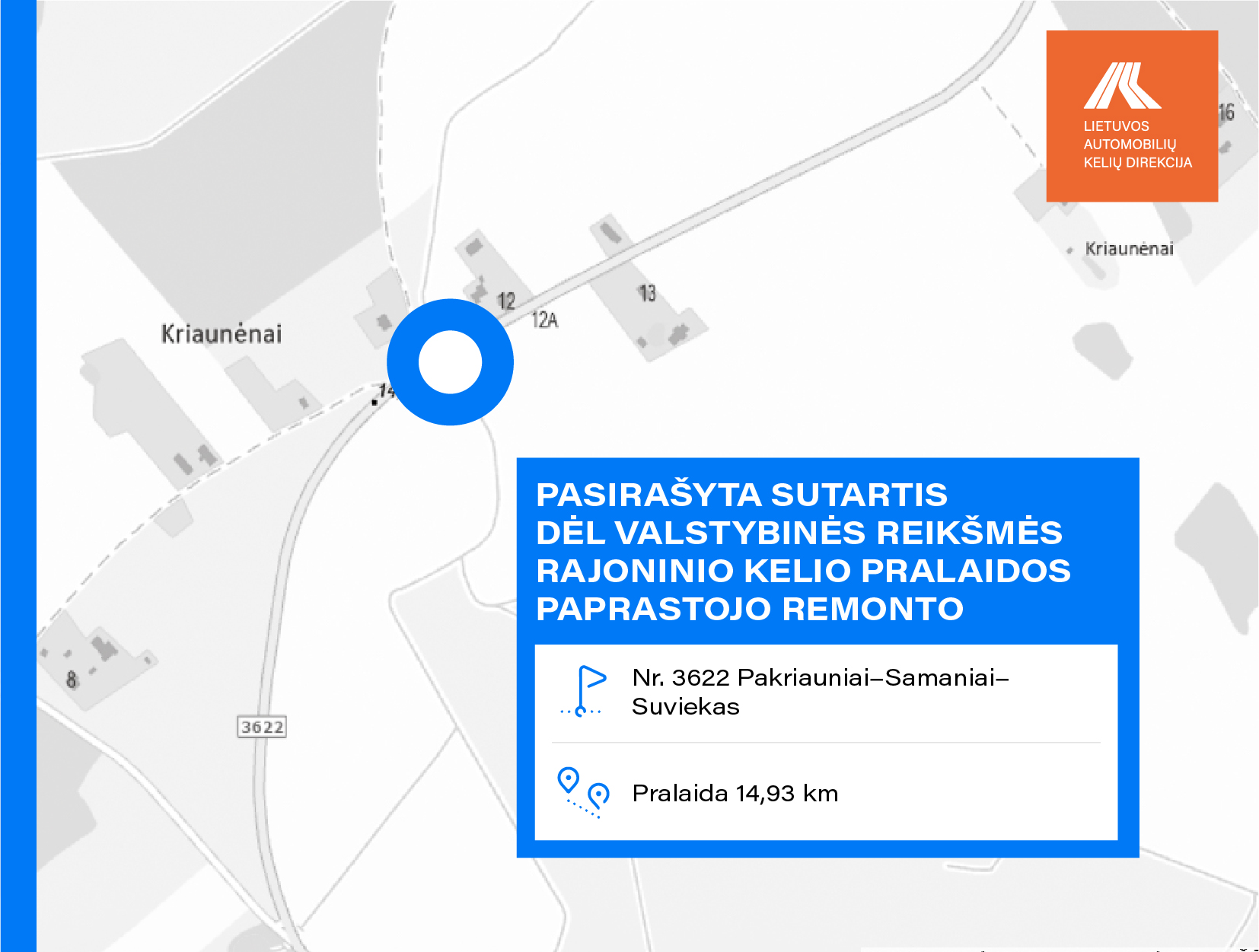 • Nr. 3622 Pakriauniai–Samaniai–Suviekas pralaidos 14,930 km;