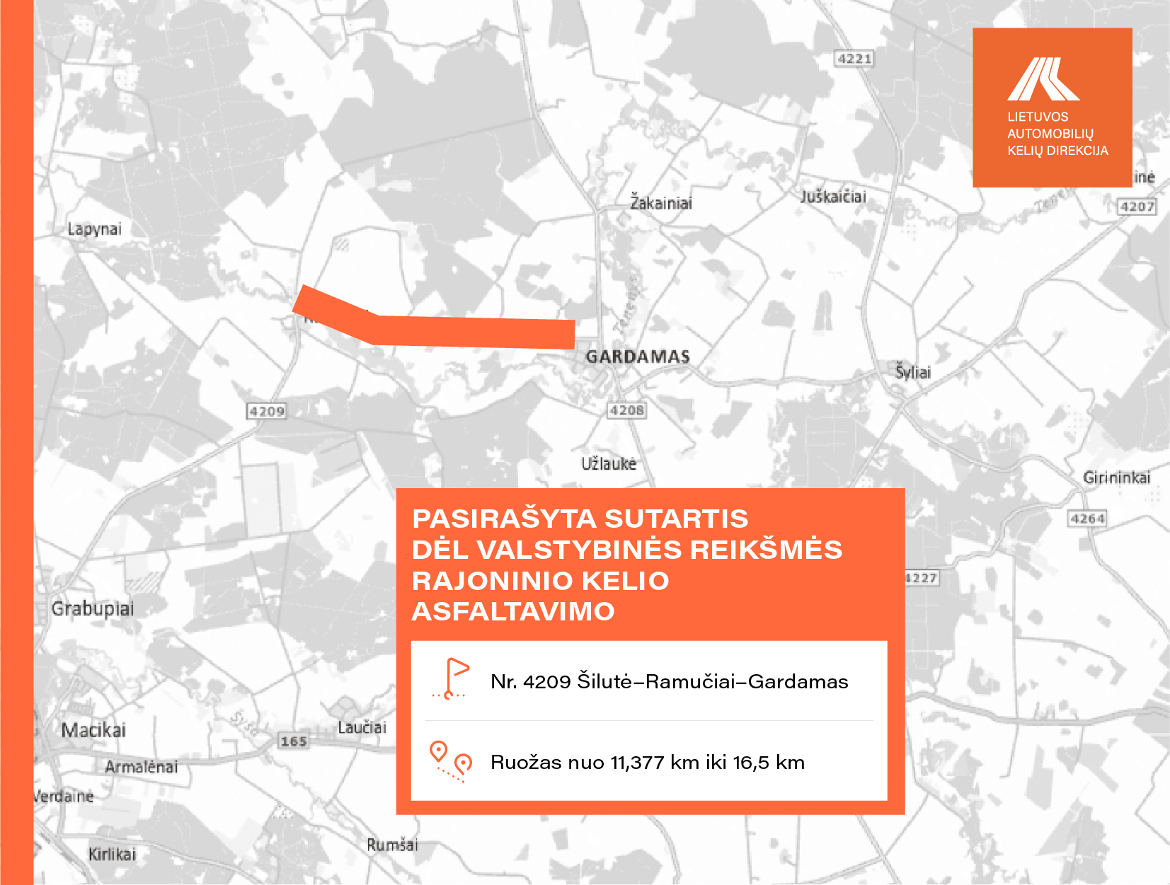 • Nr. 4209 Šilutė–Ramučiai–Gardamas ruože nuo 11,377 iki 16,500 km;