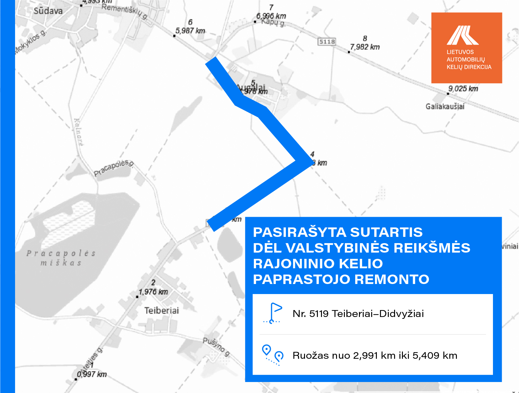 • Nr. 5119 Teiberiai–Didvyžiai ruože nuo 2,991 iki 5,409 km;