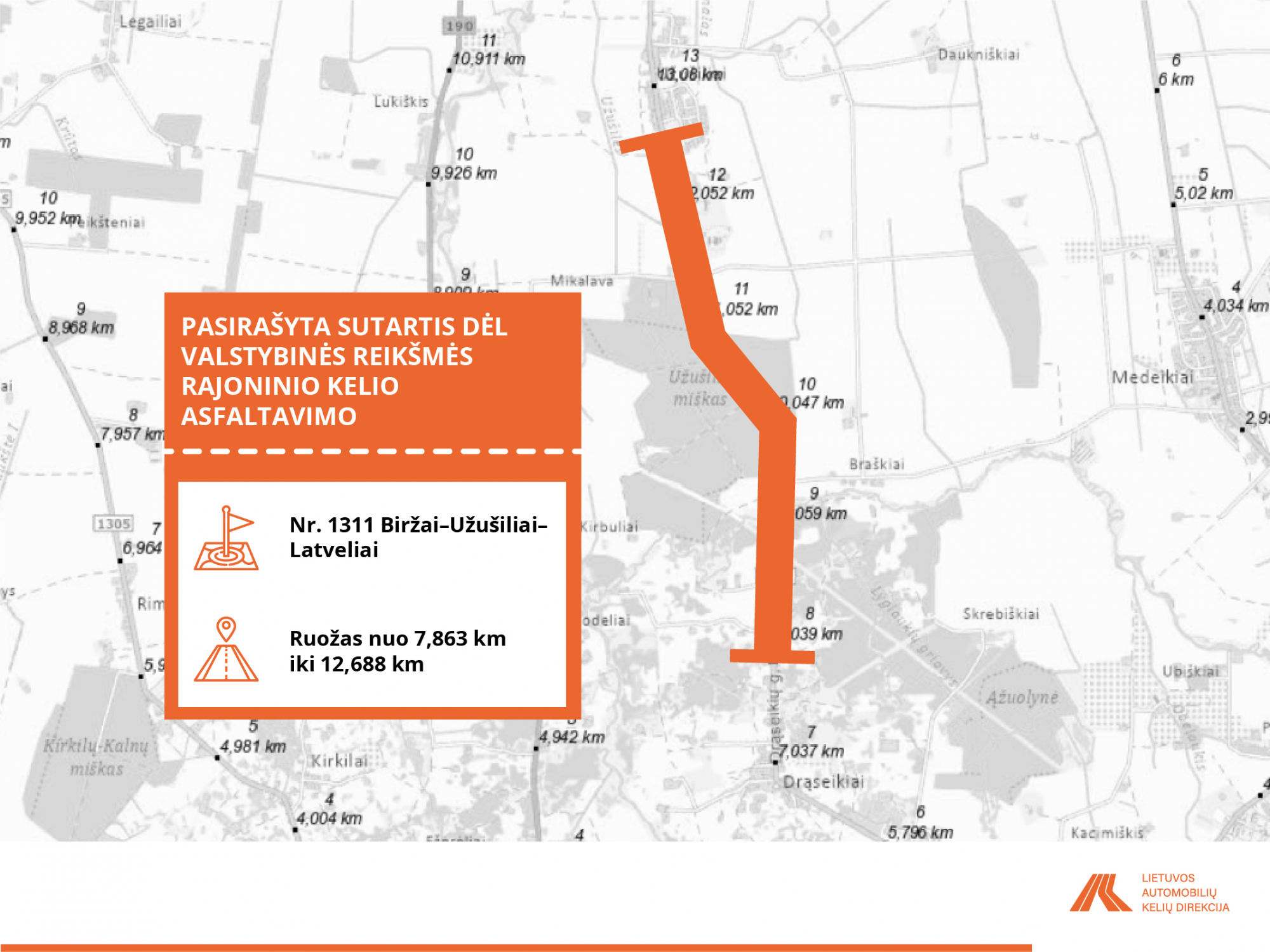 • Nr. 1311 Biržai–Užušiliai–Latveliai ruožo nuo 7,863 iki 12,688 km;
