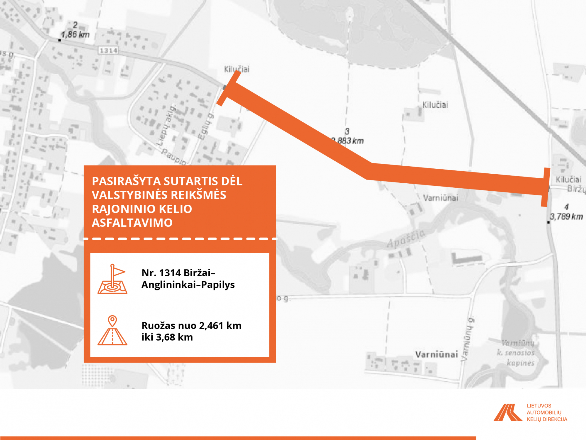 • Nr. 1314 Biržai–Anglininkai–Papilys, ruožas nuo 2,461 iki 3,680 km;