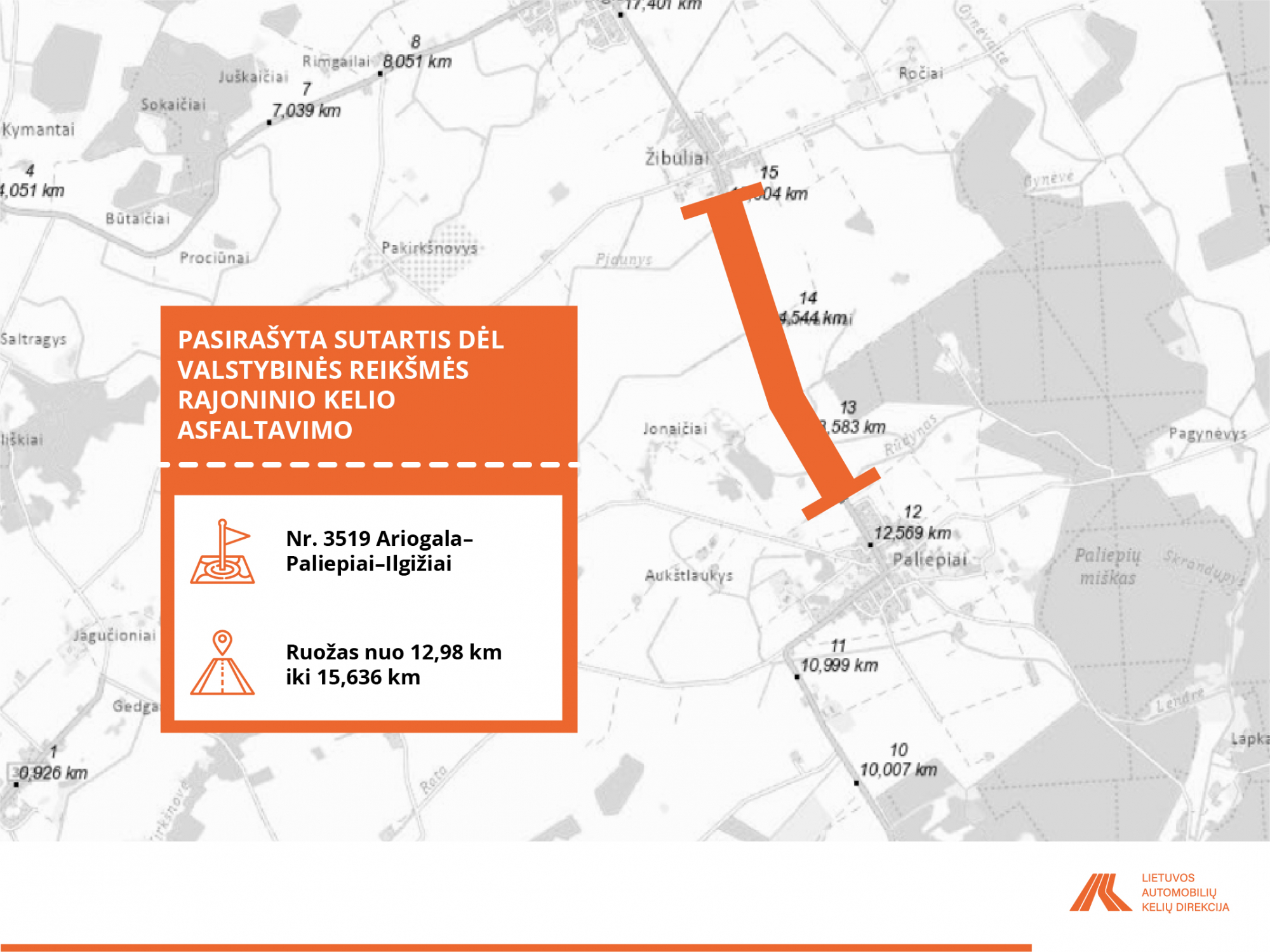 • Nr. 3519 Ariogala–Paliepiai–Ilgižiai ruožo nuo 12,980 iki 15,636 km;