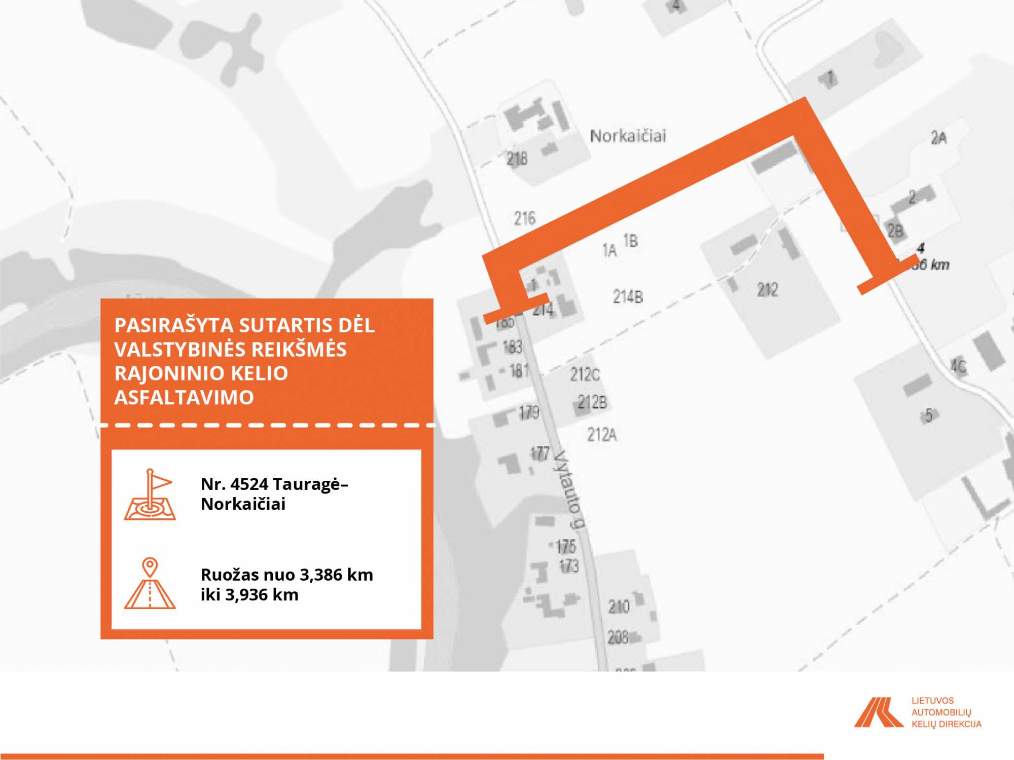 • Nr. 4524 Tauragė–Norkaičiai ruožas nuo 3,386 iki 3,936 km;