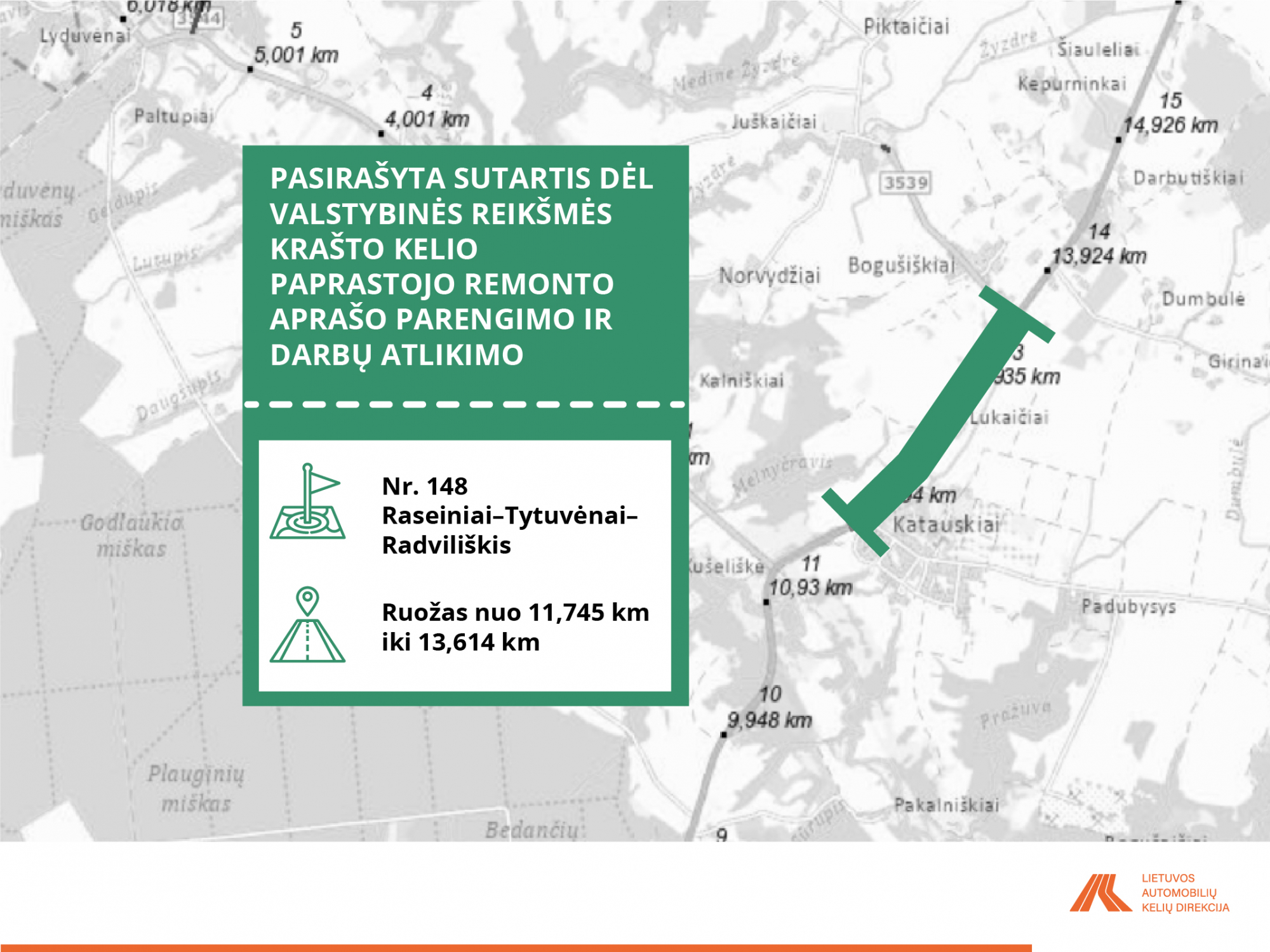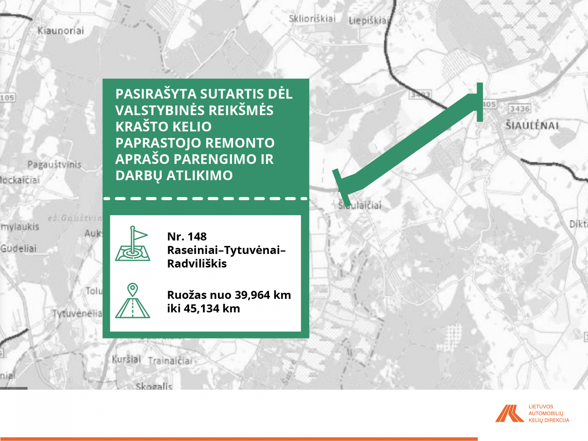 • Krašto kelio Nr. 148 Raseiniai–Tytuvėnai–Radviliškis ruožas nuo 39,964 iki 45,134 km;