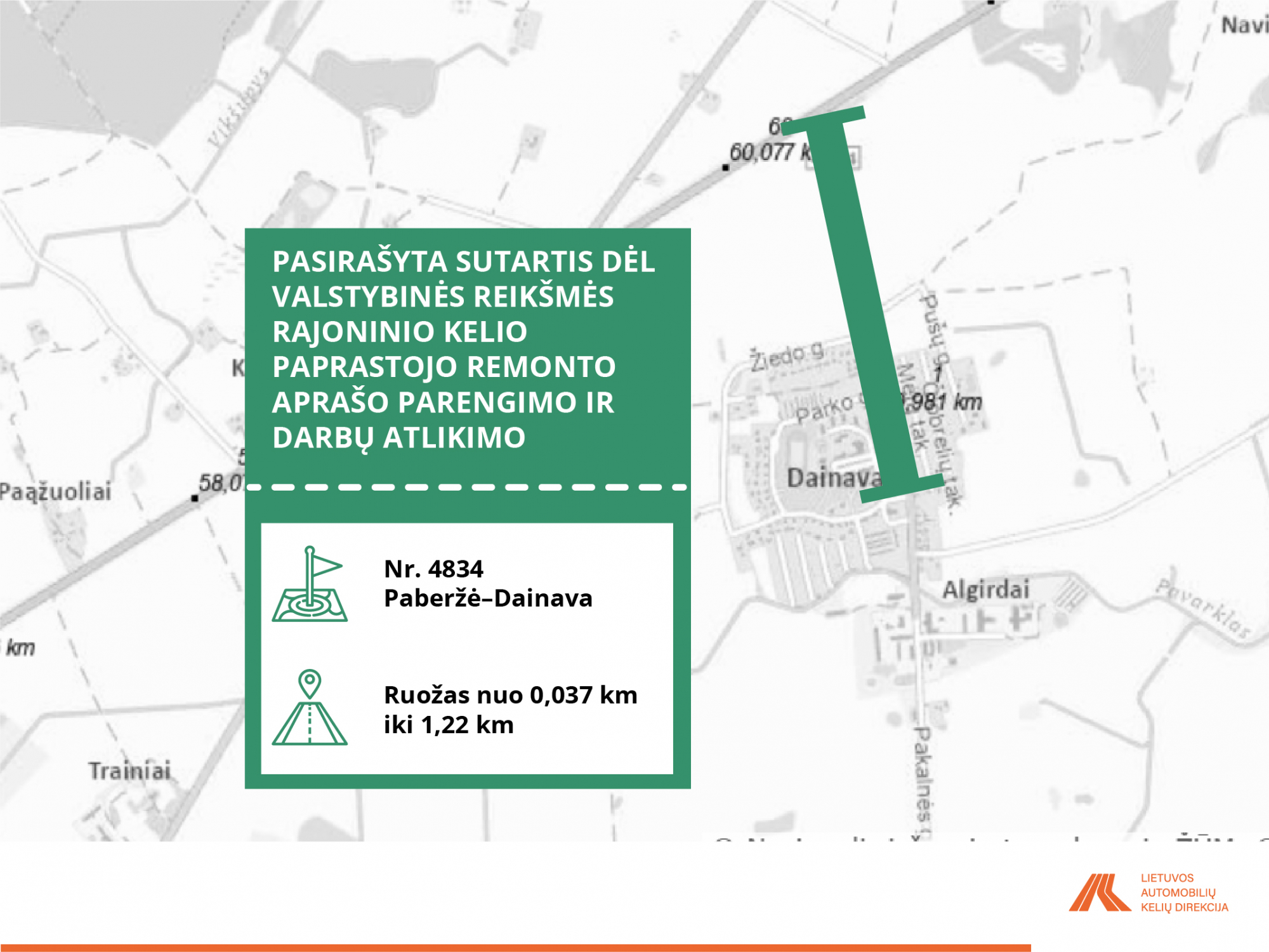 • Rajoninio kelio Nr. 4834 Paberžė–Dainava ruožas nuo 0,037 iki 1,22 km.