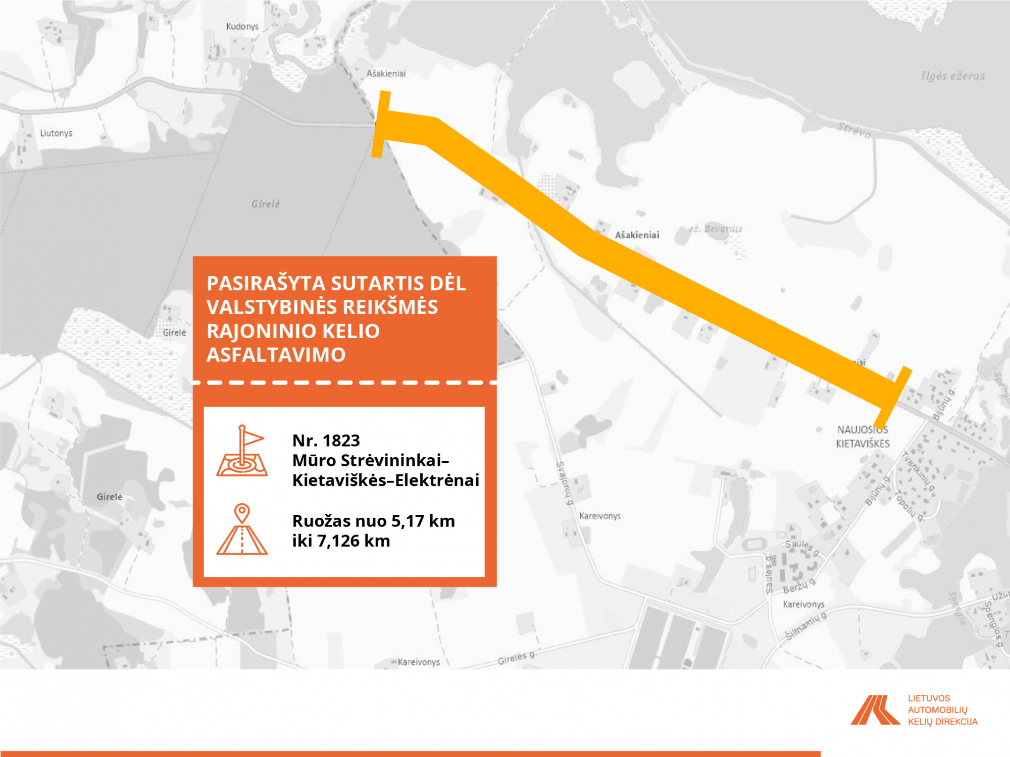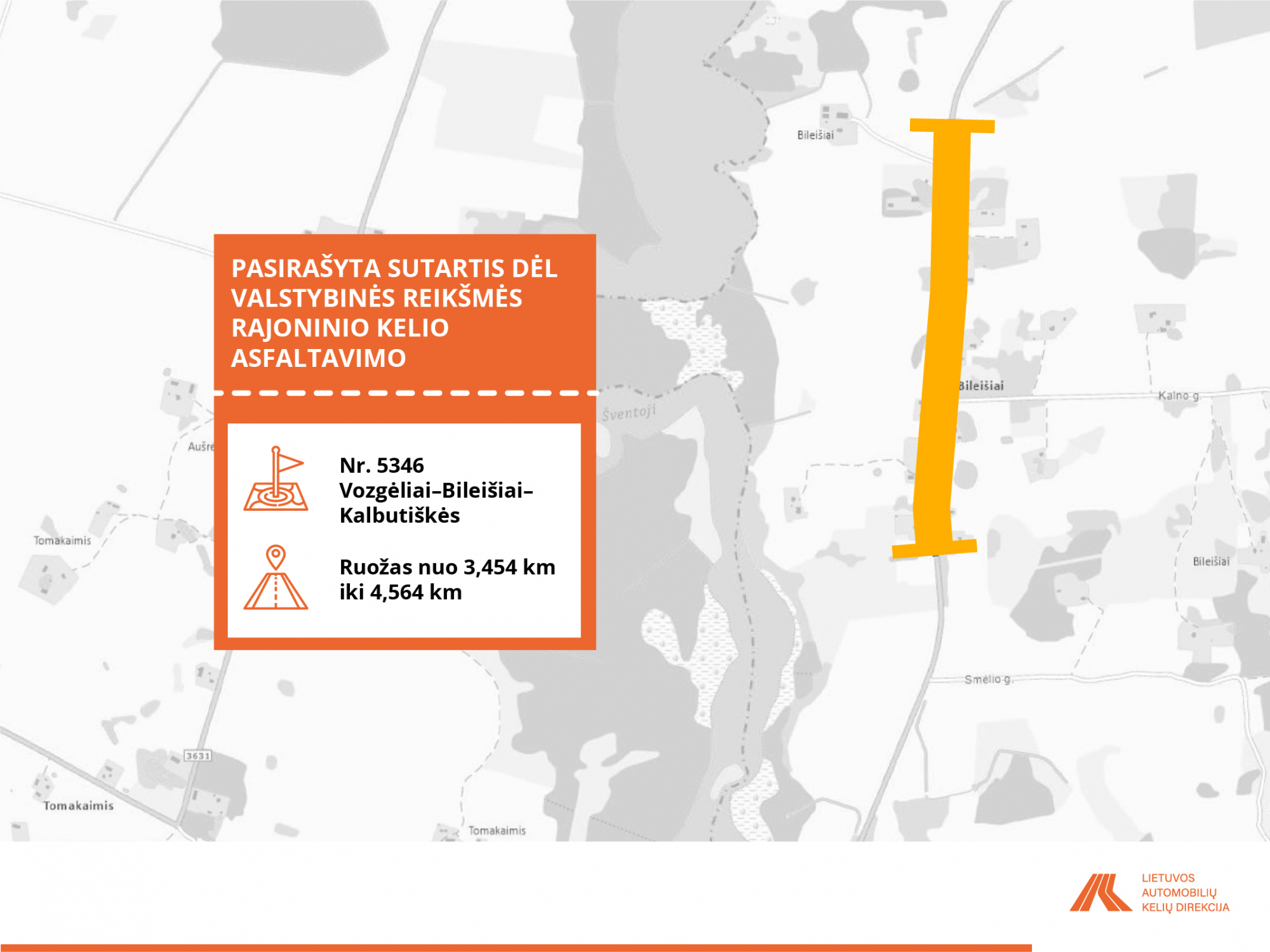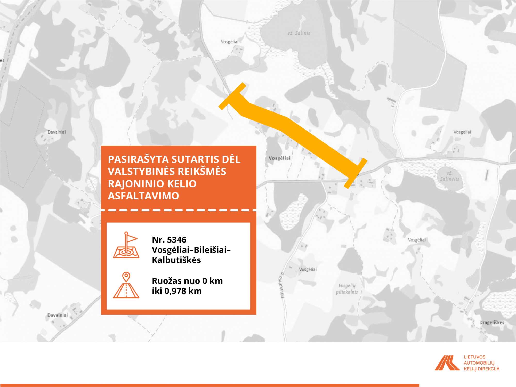 Lietuvos automobilių kelių direkcija prie Susisiekimo ministerijos pasirašė 9 žvyrkelių asfaltavimo darbų sutartis. Rangos darbus per 2020 metus planuojama atlikti šiuose Rokiškio, Šakių ir Elektrėnų valstybinės reikšmės rajoninių kelių ruožuose: