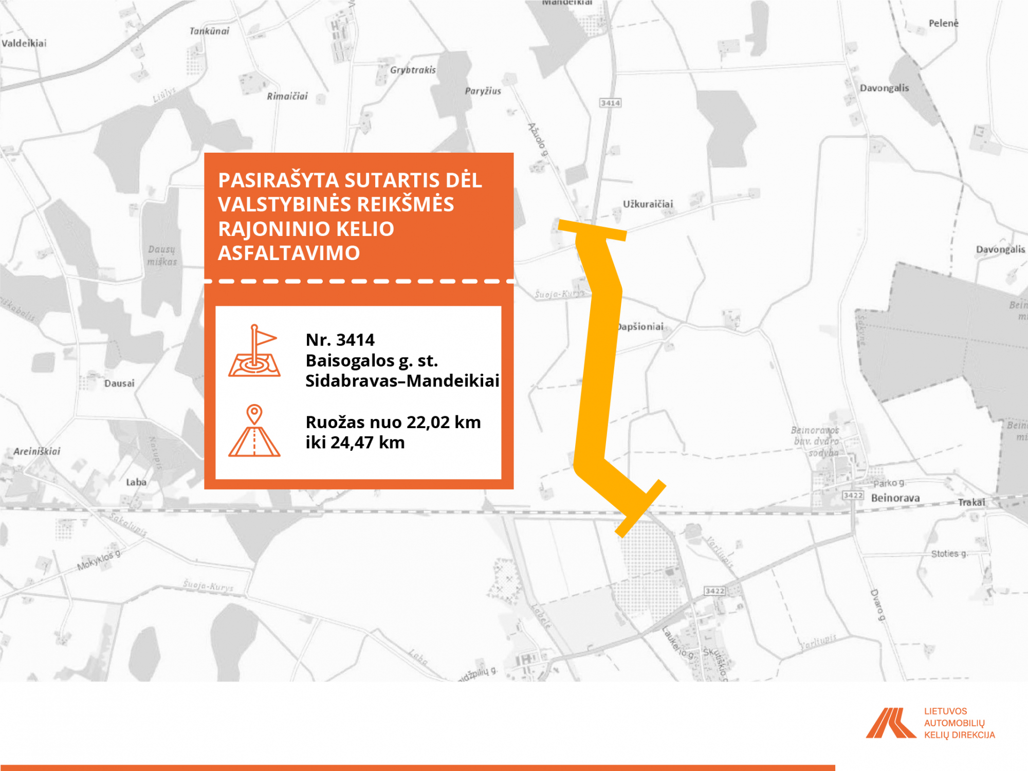 • Nr. 3414 Baisogalos g. st. Sidabravas–Mandeikiai ruožo nuo 22,02 iki 24,47 km;