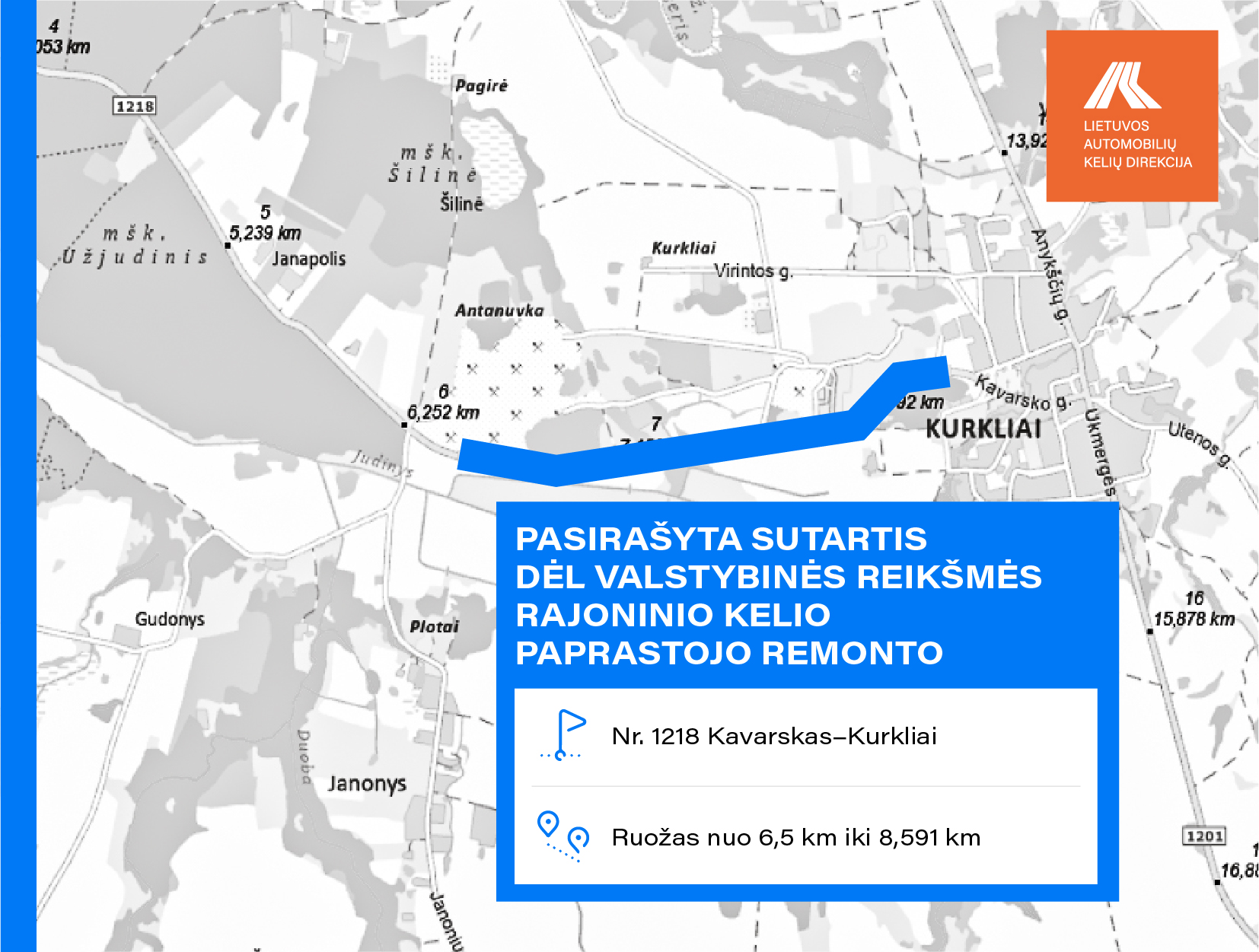 Rajoninio kelio Nr. 1218 Kavarskas–Kurkliai ruože nuo 6,50 km iki 8,591km;