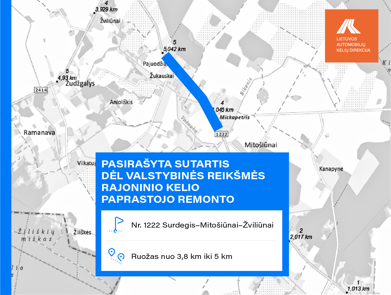 Rajoninio kelio Nr. 1222 Surdegis–Mitošiūnai–Žviliūnai ruože nuo 3,80 km iki 5,00 km;