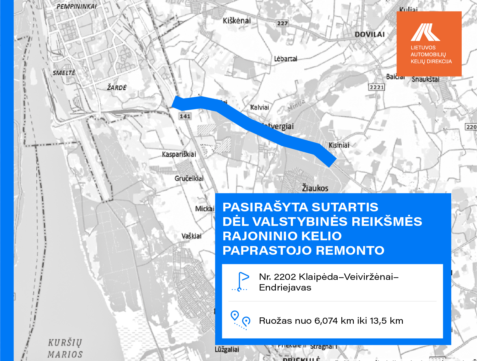 Rajoninio kelio Nr. 2202 Klaipėda–Veiviržėnai–Endriejavas ruožų nuo 6,074 iki 13,500 km;