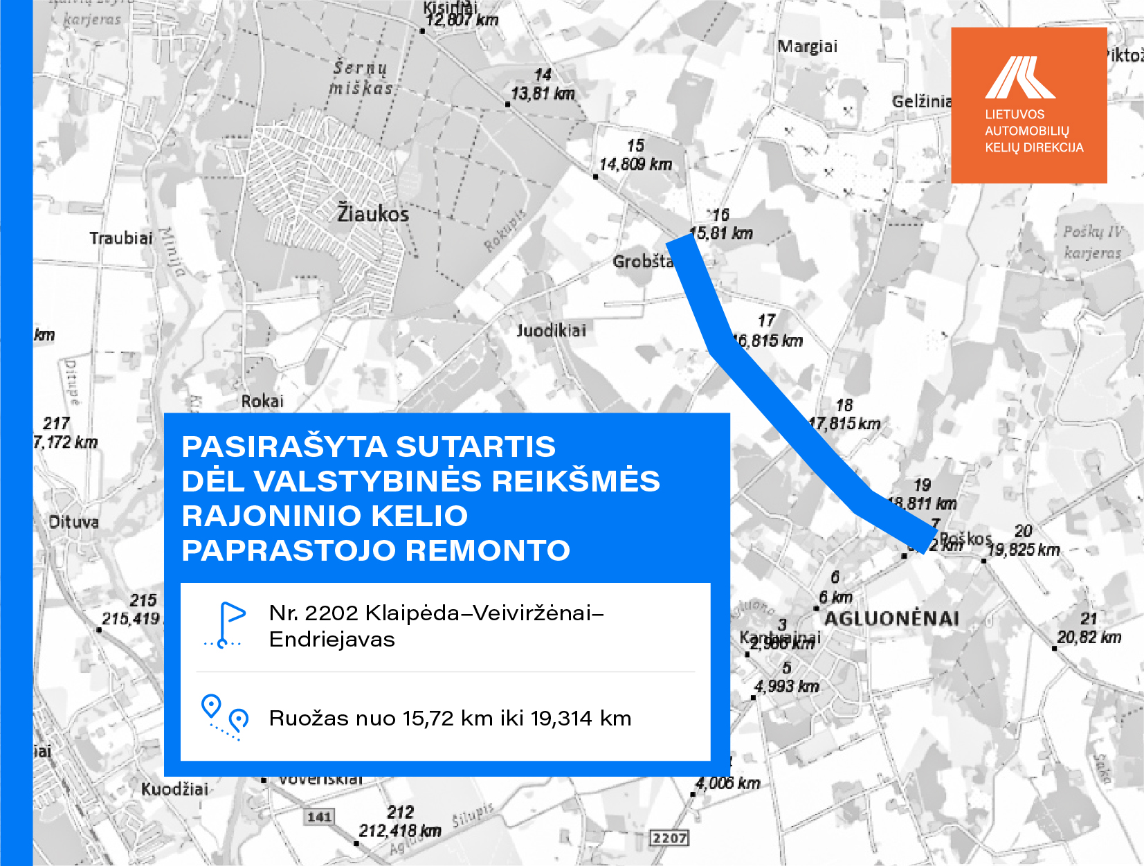Rajoninio kelio Nr. 2202 Klaipėda–Veiviržėnai–Endriejavas ruožų nuo 15,720 iki 19,314 km;