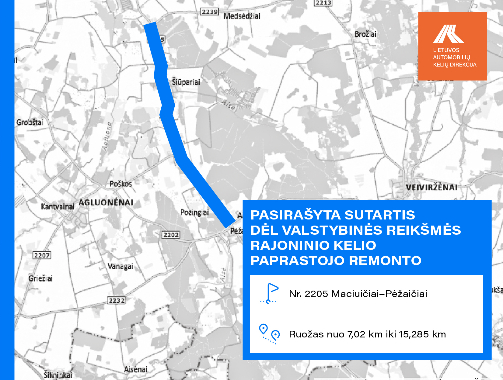 Rajoninio kelio Nr. 2205 Maciuičiai–Pėžaičiai ruožo nuo 7,020 iki 15,285 km;