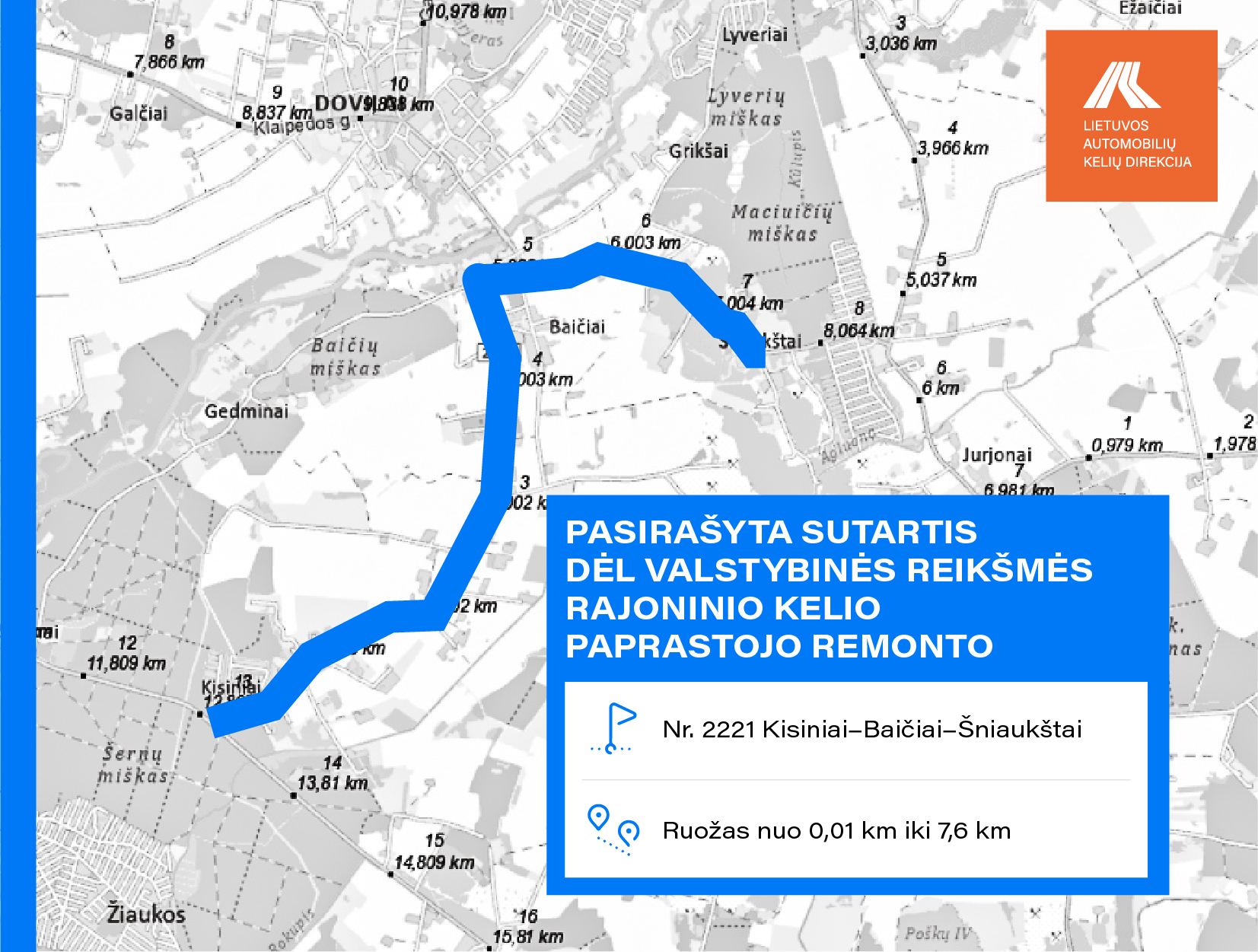 Rajoninio kelio Nr. 2221 Kisiniai–Baičiai–Šniaukštai ruožo nuo 0,010 iki 7,600 km;