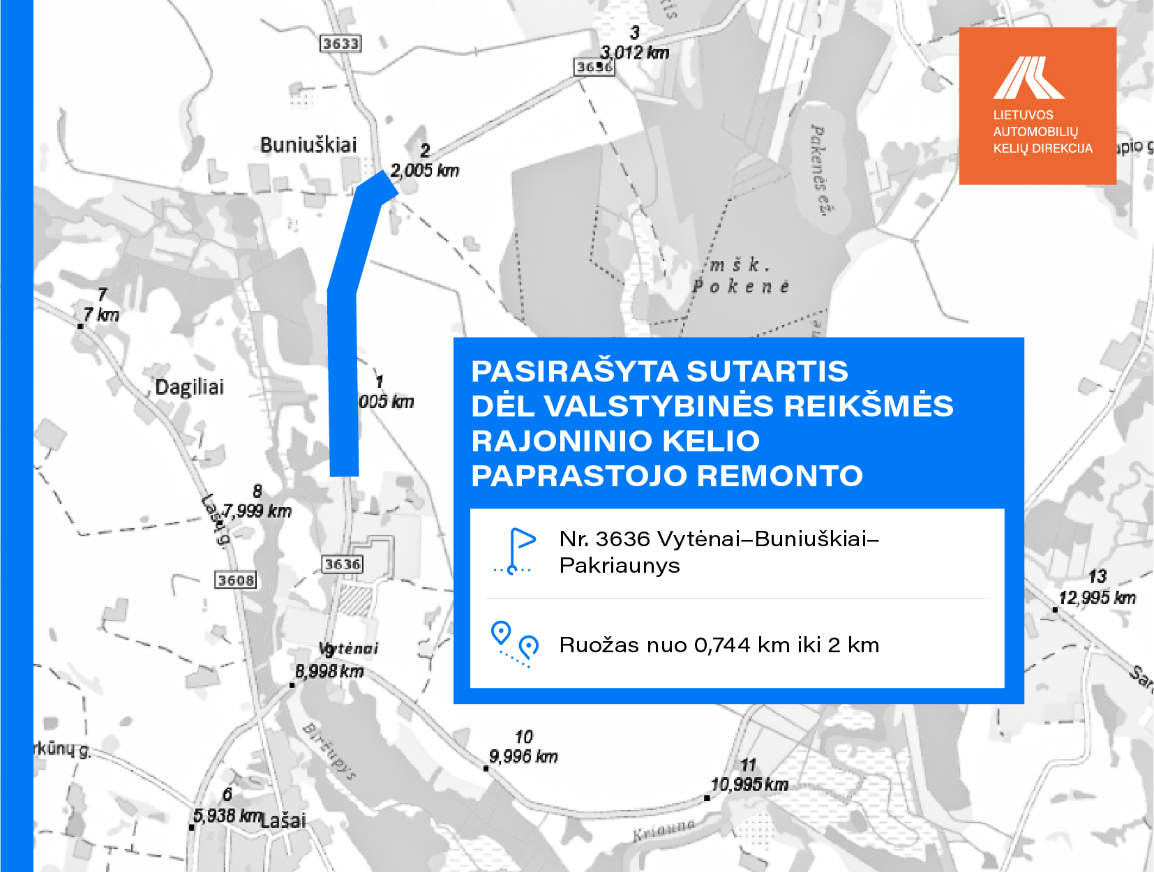 Rajoninio kelio Nr. 3636 Vytėnai–Buniuškiai–Pakriaunys ruože nuo 0,744 km iki 2,00 km;