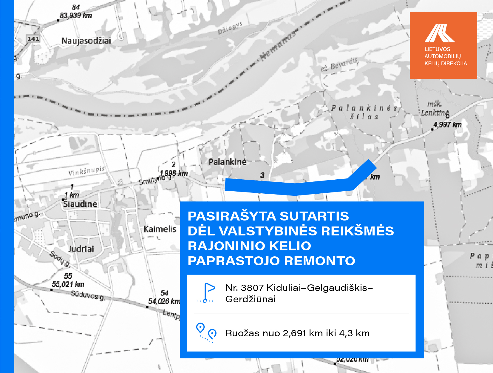 Rajoninio kelio Nr. 3807 Kiduliai–Gelgaudiškis–Gerdžiūnai ruože nuo 2,691 km iki 4,300 km;