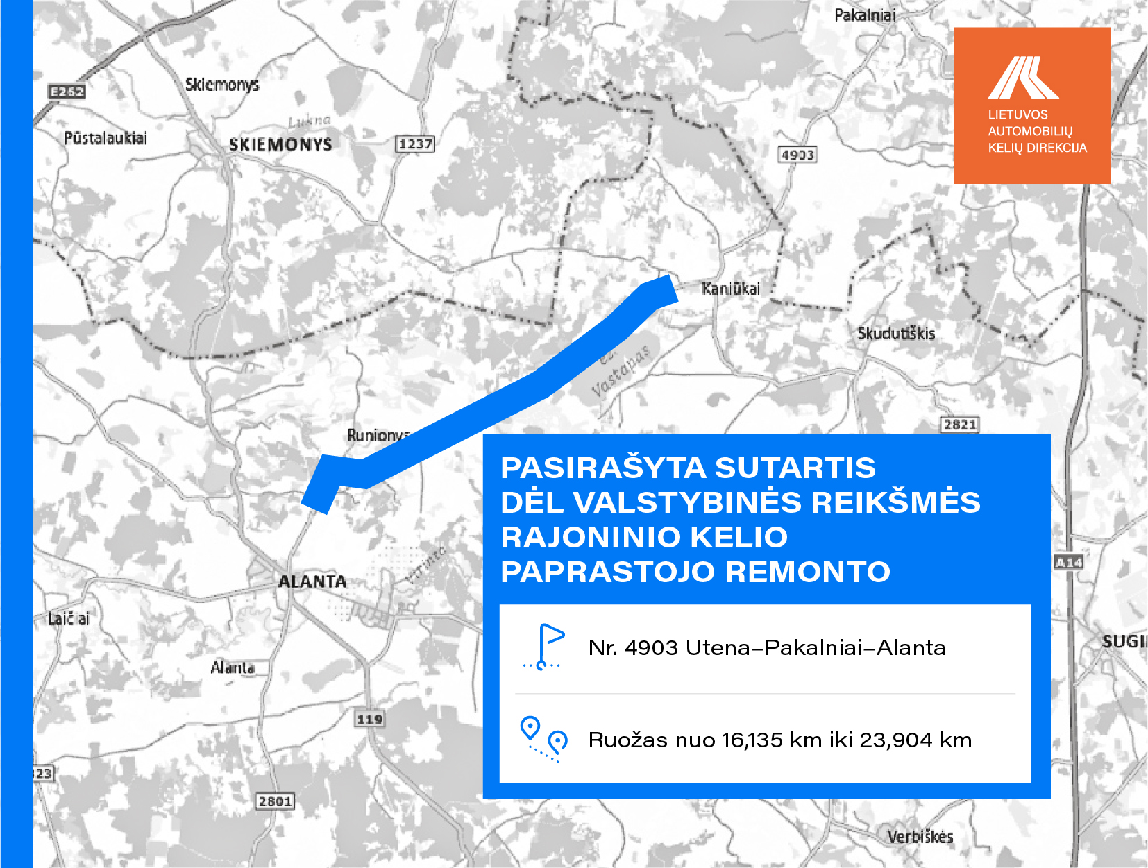 Rajoninio kelio Nr. 4903 Utena–Pakalniai–Alanta ruože nuo 16,135 km iki 23,904 km;