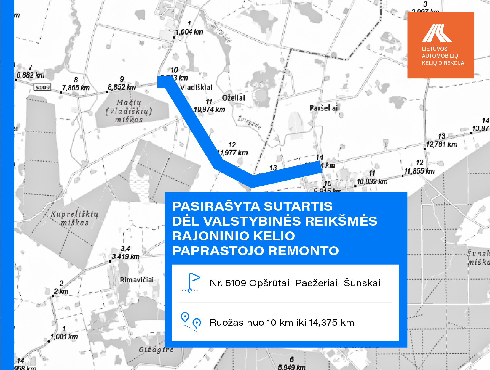 Rajoninio kelio Nr. 5109 Opšrūtai–Paežeriai–Šunskai ruože nuo 10,00 iki 14,375 km;