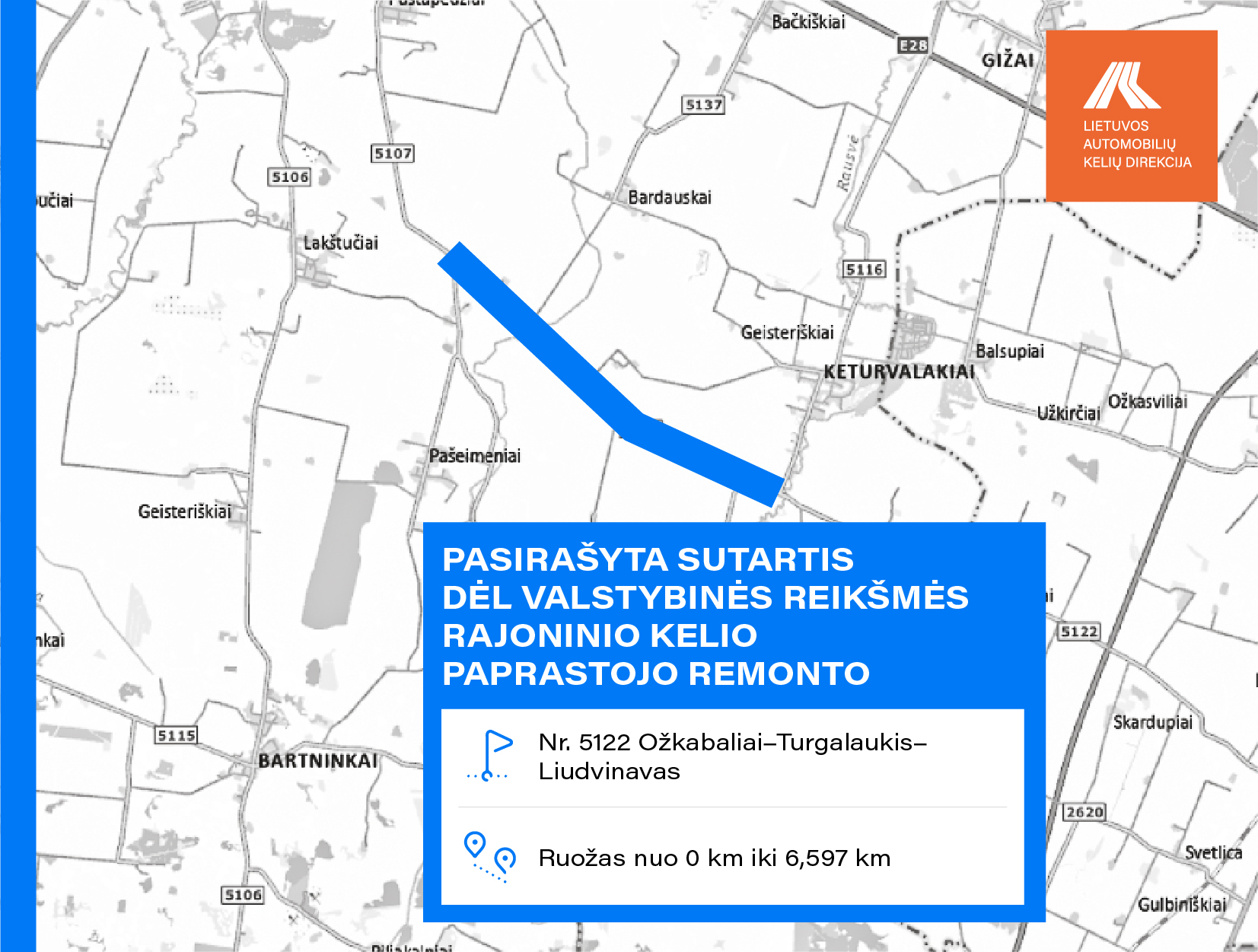 Rajoninio kelio Nr. 5122 Ožkabaliai–Turgalaukis–Liudvinavas ruože nuo 0,0 iki 6,597 km;