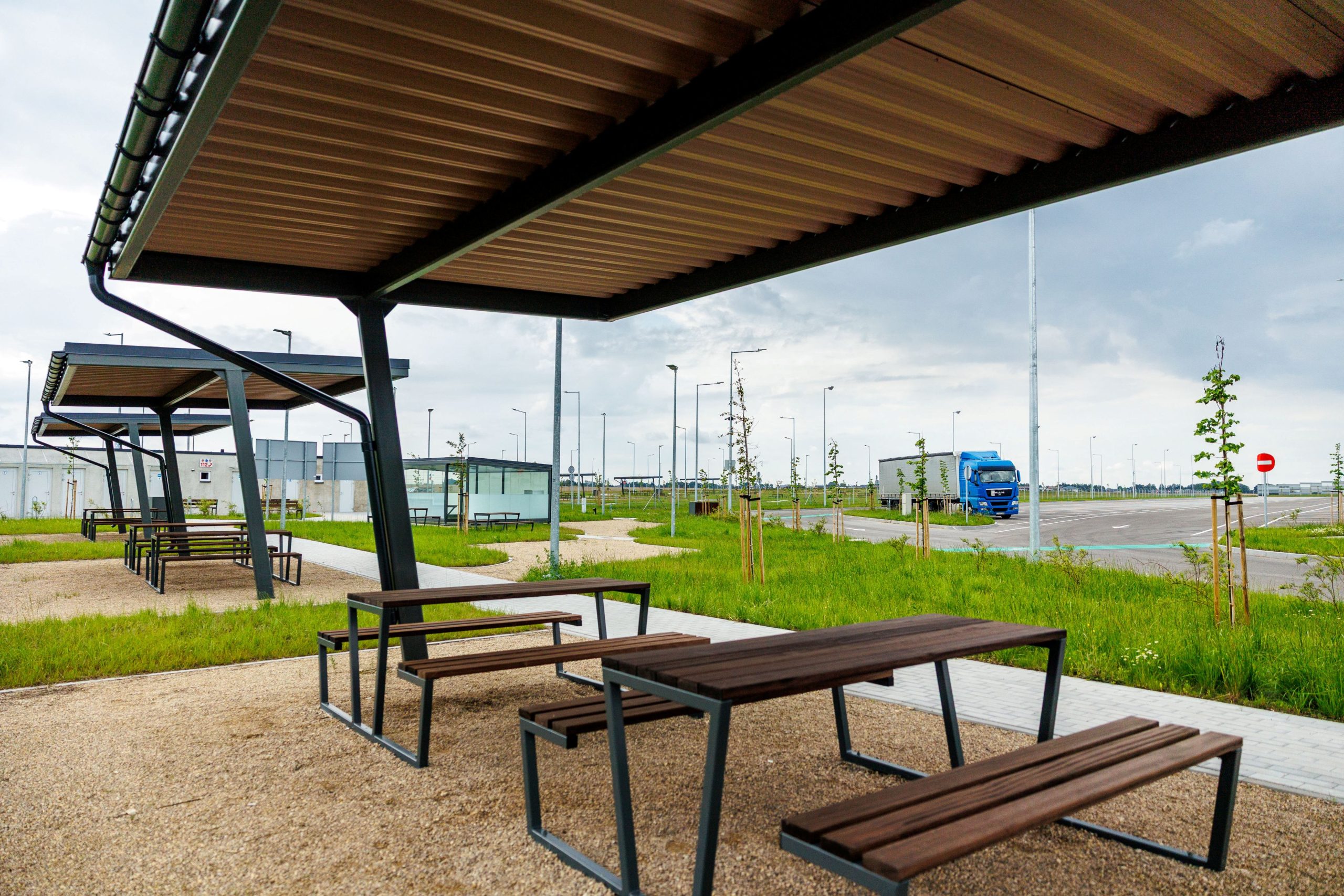 Keliautojai čia ras ne tik stovėjimo vietas skirtingų tipų transportui, bet ir modernias sanitarines patalpas, atskiras poilsio zonas su pavėsinėmis, suolais ir stendais, nemokamą belaidį internetą, elektromobilių įkrovimo stoteles bei saugią, apšviestą aplinką. Visa tai – nemokamai ir pritaikyta patogiai, trumpai ar ilgesnei stotelei kelyje.