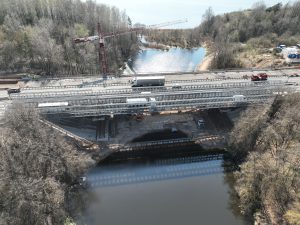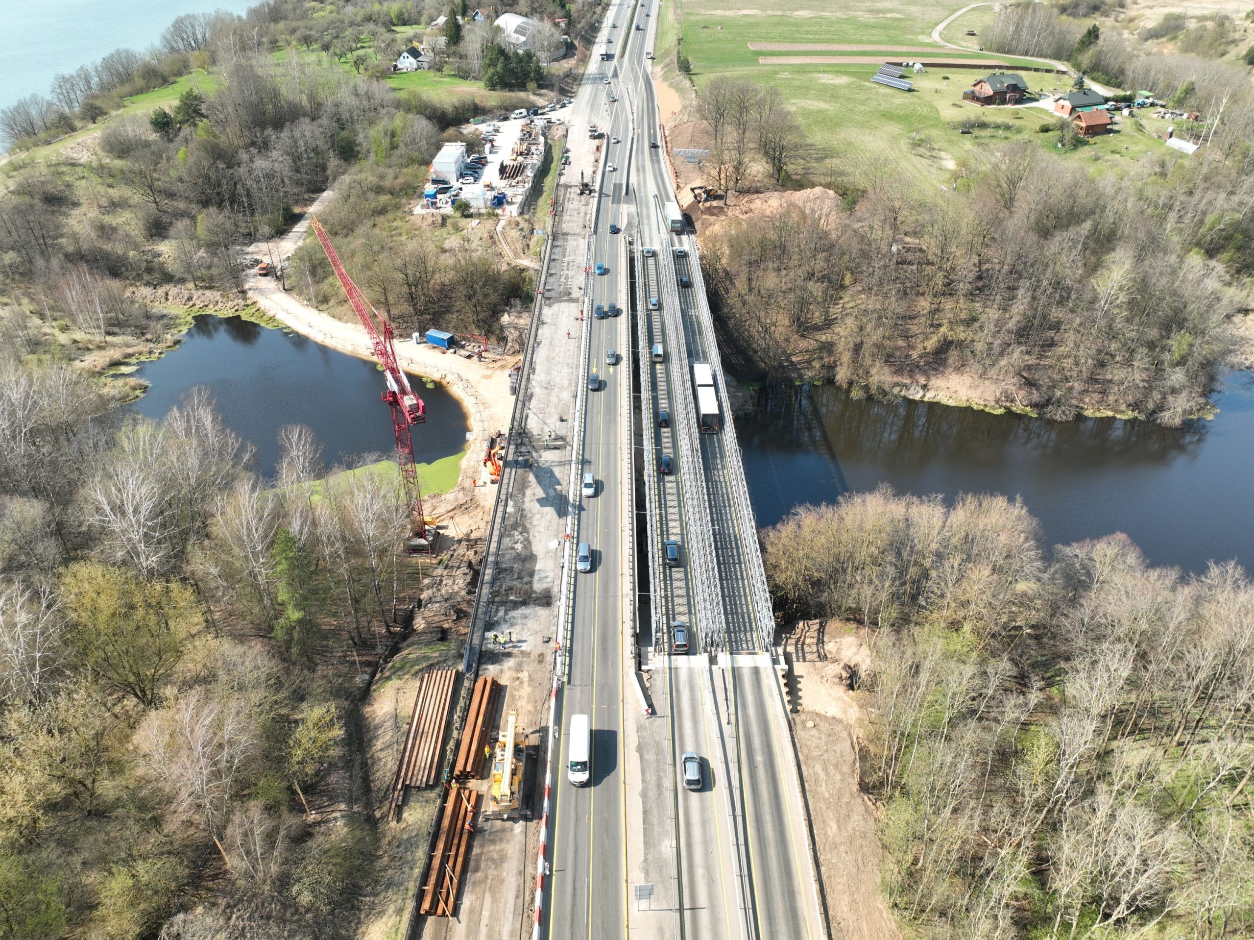 Dabar eismas Kauno kryptimi yra kreipiamas dviem juostomis laikinu tiltu, o Vilniaus kryptimi eismas yra kreipiamas viena puse esamu tiltu.